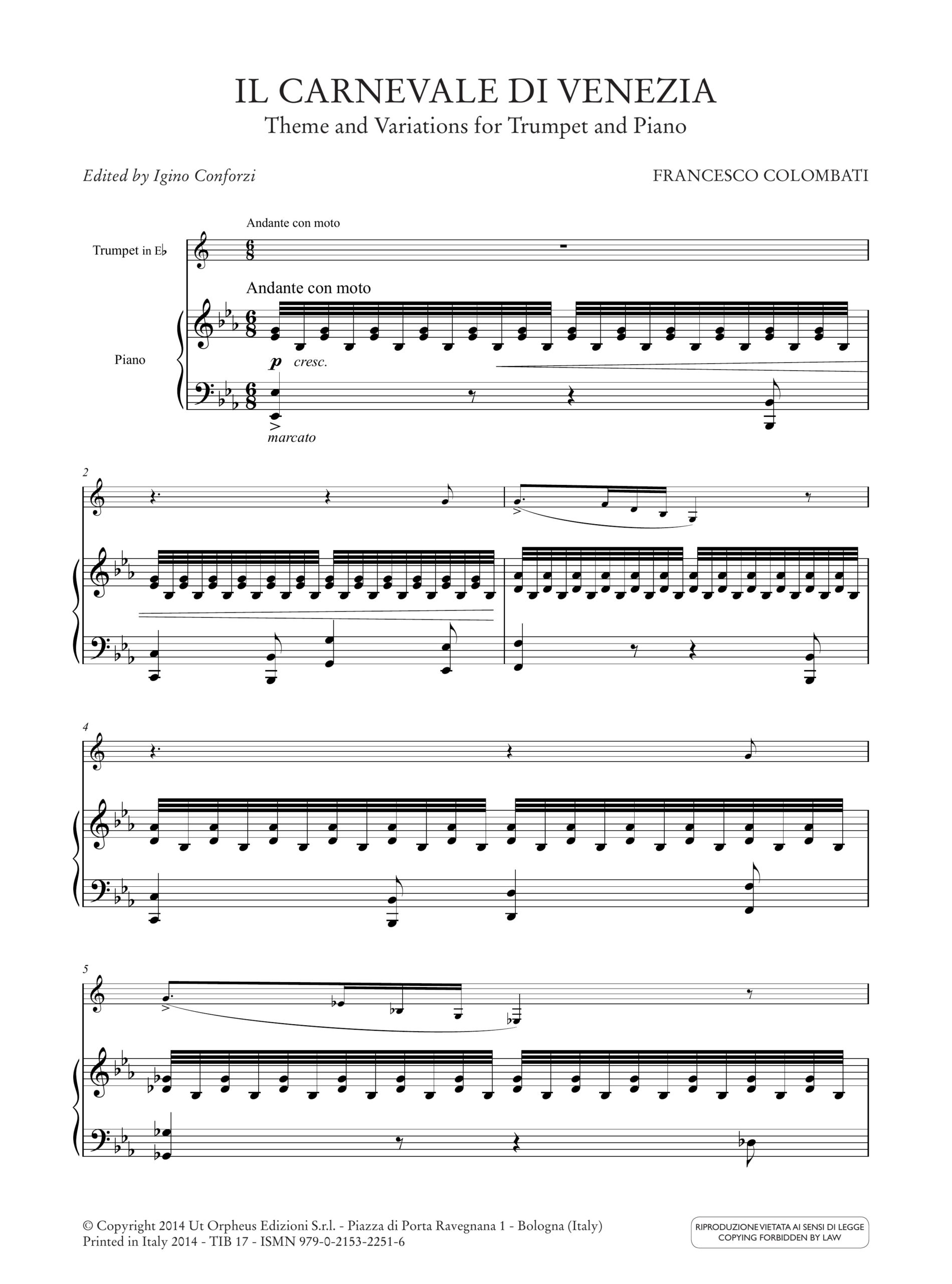 Colombati, Francesco: Il Carnevale di Venezia. Tema e Variazioni per Tromba e Pianoforte