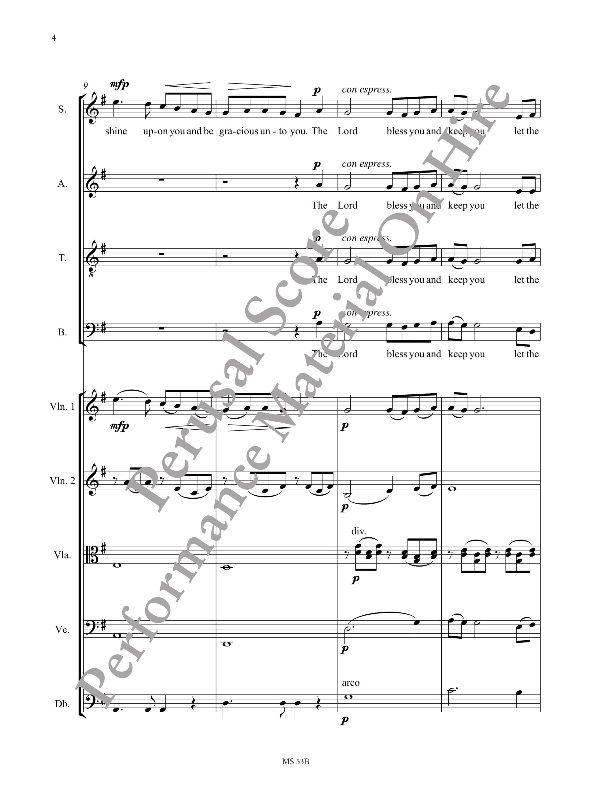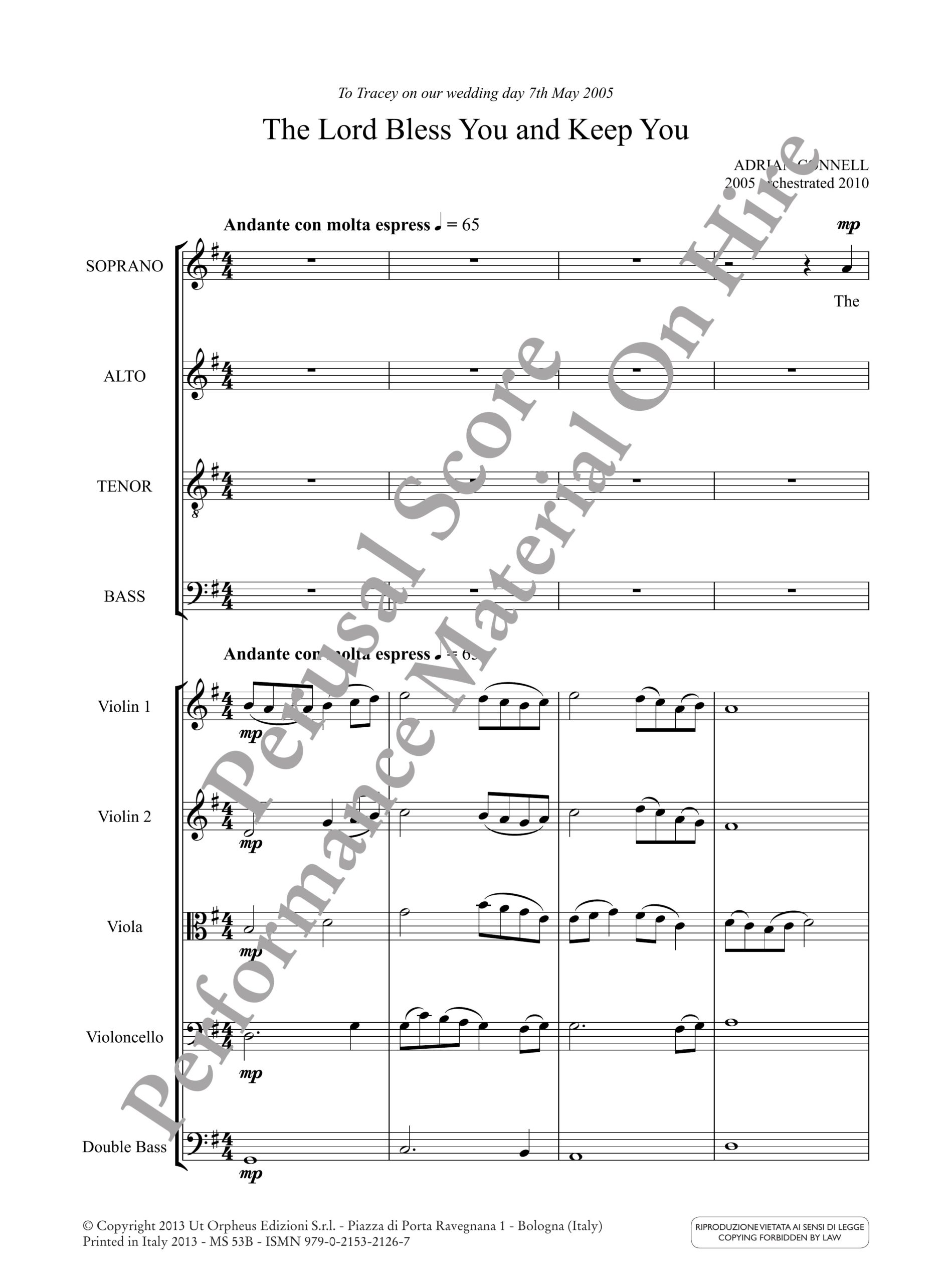 Connell, Adrian: The Lord Bless You and Keep You per Coro a 4 voci (SATB) e Orchestra [Materiale per l’esecuzione a noleggio]