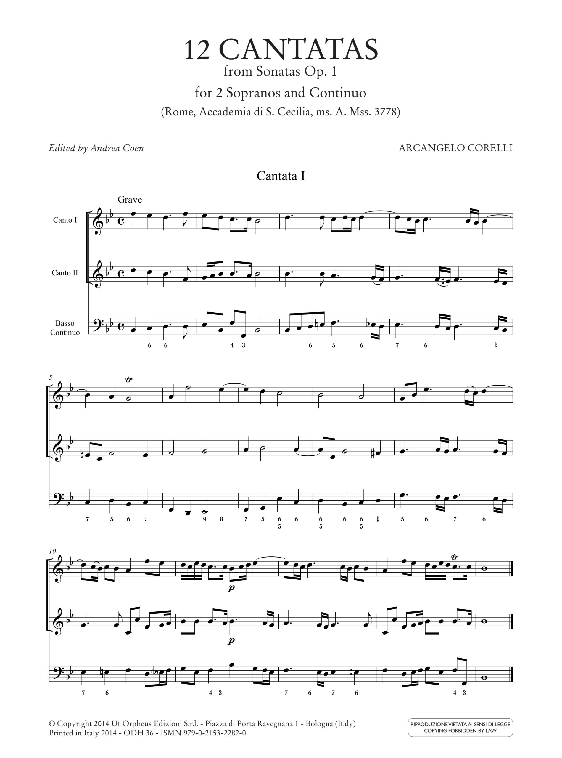 Corelli, Arcangelo: 12 Cantate (dalle Sonate op. 1) per 2 Soprani e Basso Continuo (Roma, Accademia di S. Cecilia, ms. A. Mss. 3778)