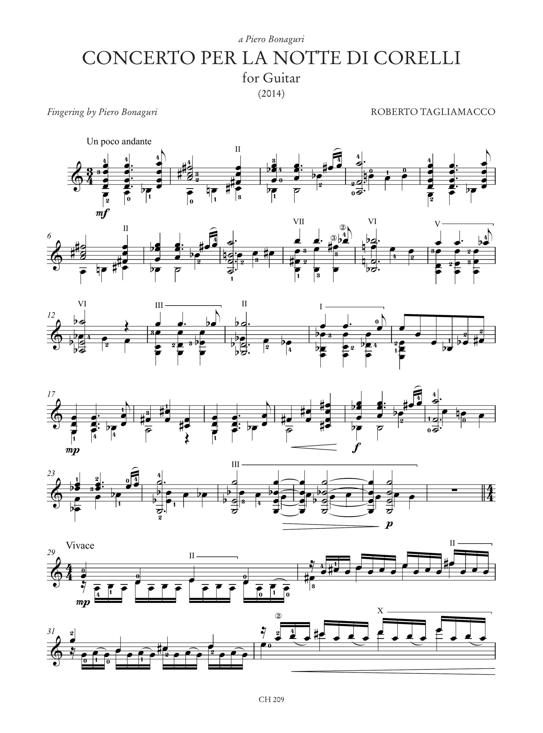 Nel 2013, secondo centenario della morte di Arcangelo Corelli, ho suonato in una manifestazione ufficiale in suo ricordo a Fusignano, suo paese natale. Corelli non ha scritto per chitarra, ma alcune sue composizioni vennero trascritte da qualche chitarrista coevo e certamente al suo nome è da sempre associato nella storia della musica il tema della notissima “Follia di Spagna” (per quanto le origini di questo tema siano di molto anteriori a Corelli), tema sul quale esistono nel repertorio della chitarra noti cicli di variazioni. La mia lunga storia di amicizia e collaborazione con importanti compositori italiani mi ha permesso di costruire un programma da concerto nel quale fossero presenti alcune nuove composizioni per chitarra dedicate a Corelli, alle quali poi se ne sono aggiunte altre; il tutto è raccolto in questa antologia, con le eccezioni di “Corelliana” di Davide Anzaghi, “Per Arcangelo” di Gilberto Cappelli e “Corelliana Seconda” di Paolo Ugoletti, pubblicati separatamente.