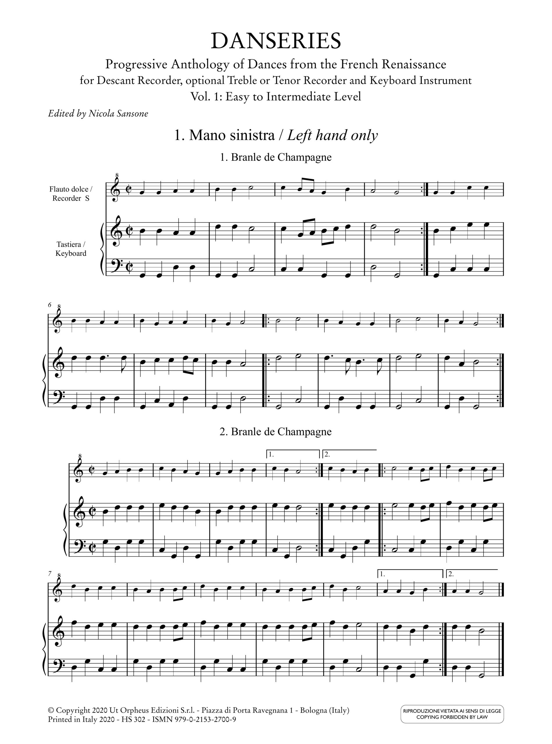 Danseries. Antologia progressiva di Danze del Rinascimento francese per Flauto Dolce Soprano, Flauto Dolce Contralto o Tenore ad lib. e strumento a tastiera – Vol. 1: Livello facile-intermedio