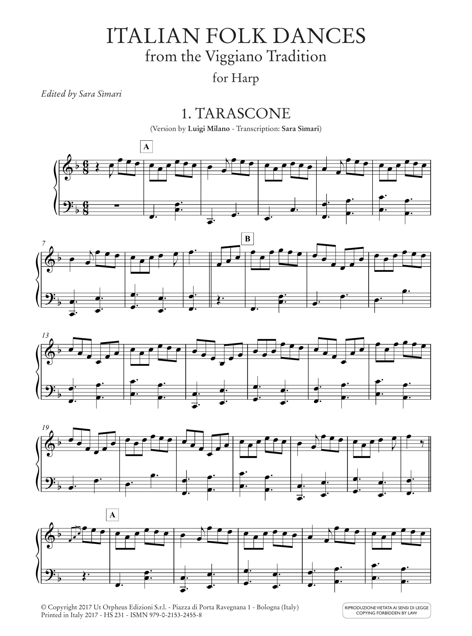 Danze Popolari Italiane dal repertorio tradizionale Viggianese per Arpa