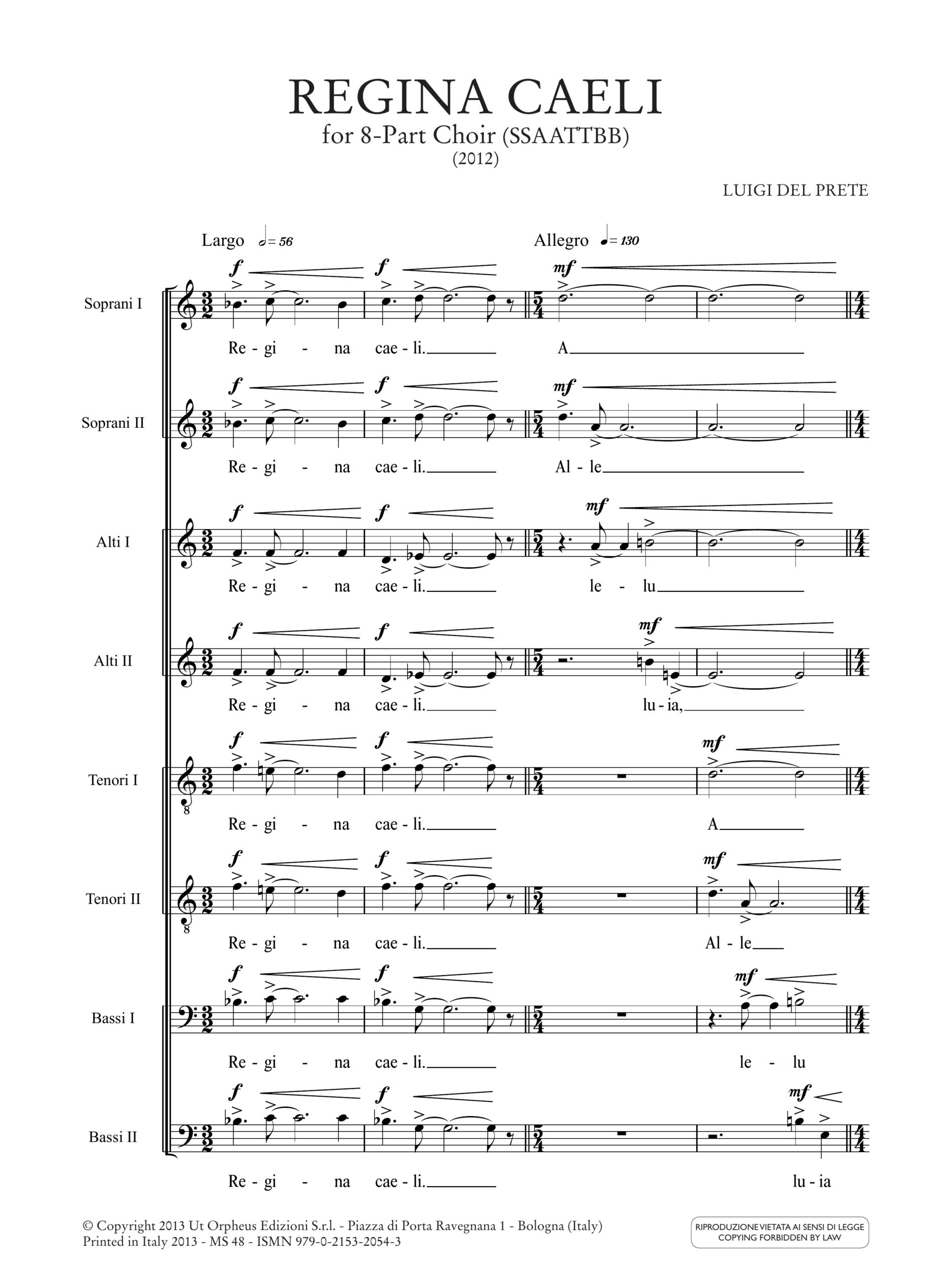 Del Prete, Luigi: Regina Caeli per Coro a 8 voci (SSAATTBB) (2012) [Partitura]