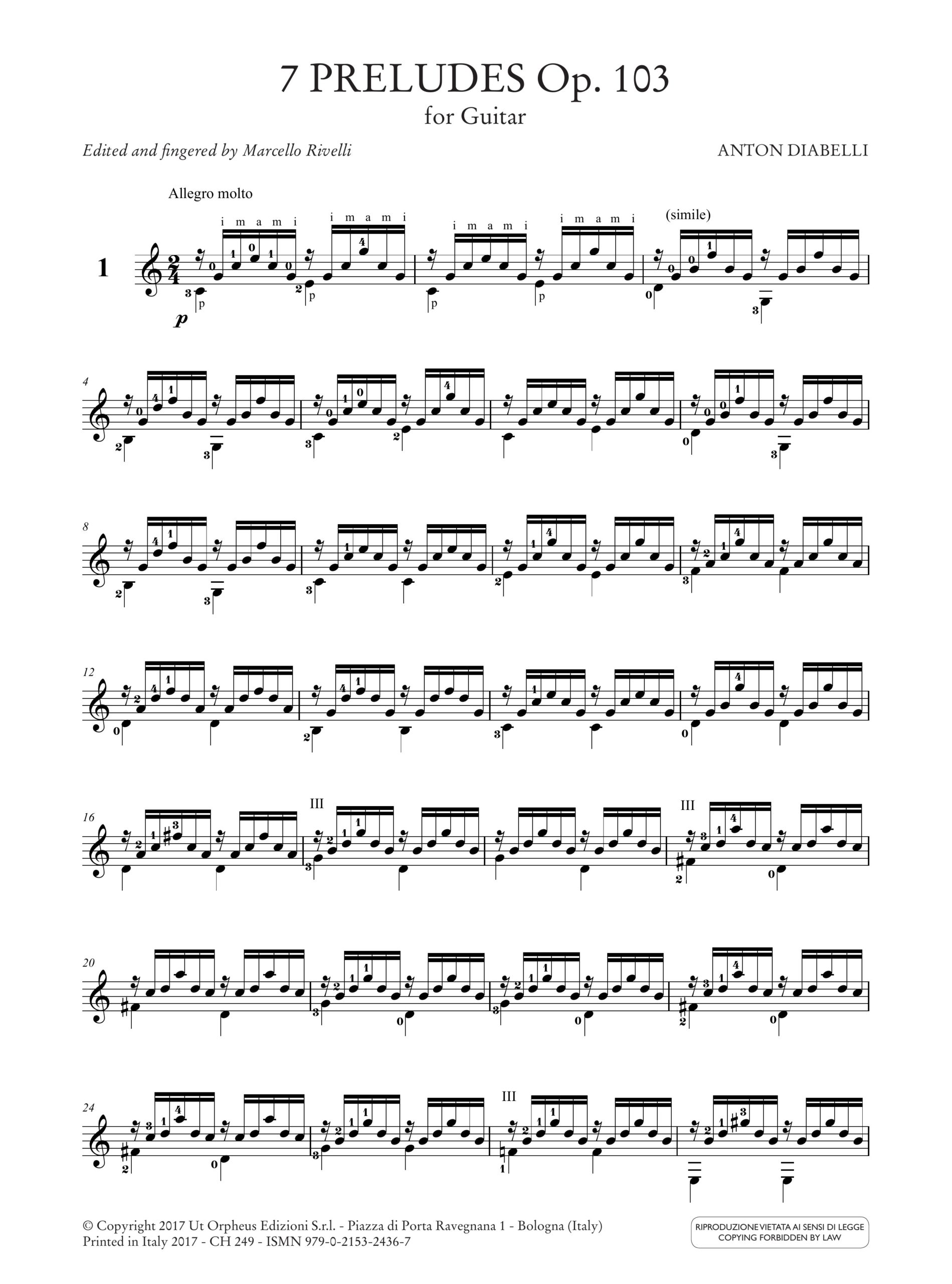 Diabelli, Anton: 7 Preludi op. 103 per Chitarra