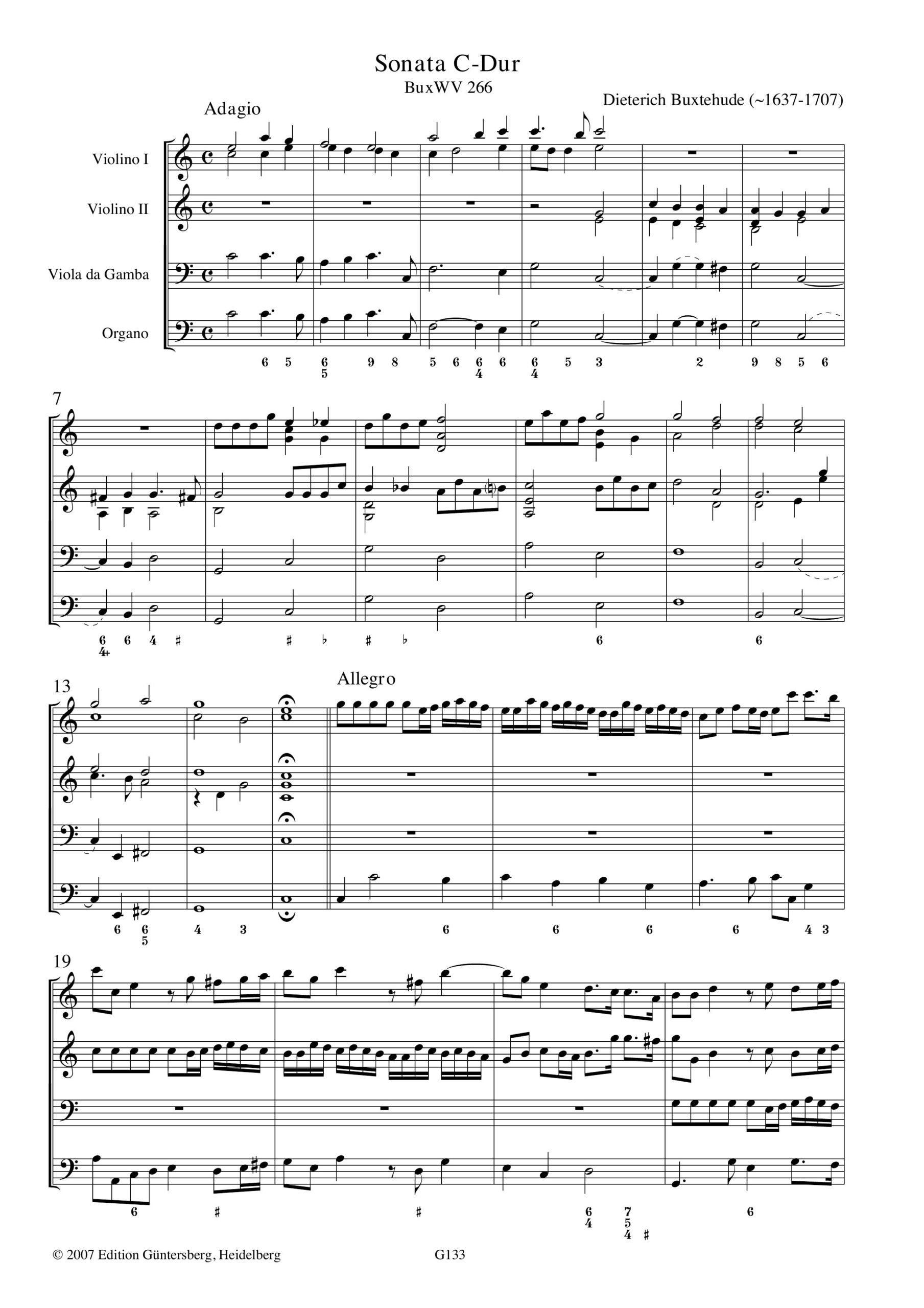 D. Buxtehude, Sonata C-Dur, BuxWV 266, 2V+VdG+Bc, Partitur, 4 Stimmen, zweite Partitur mit Aussetzung, 48 S., ISMN 979-0-50174-133-5