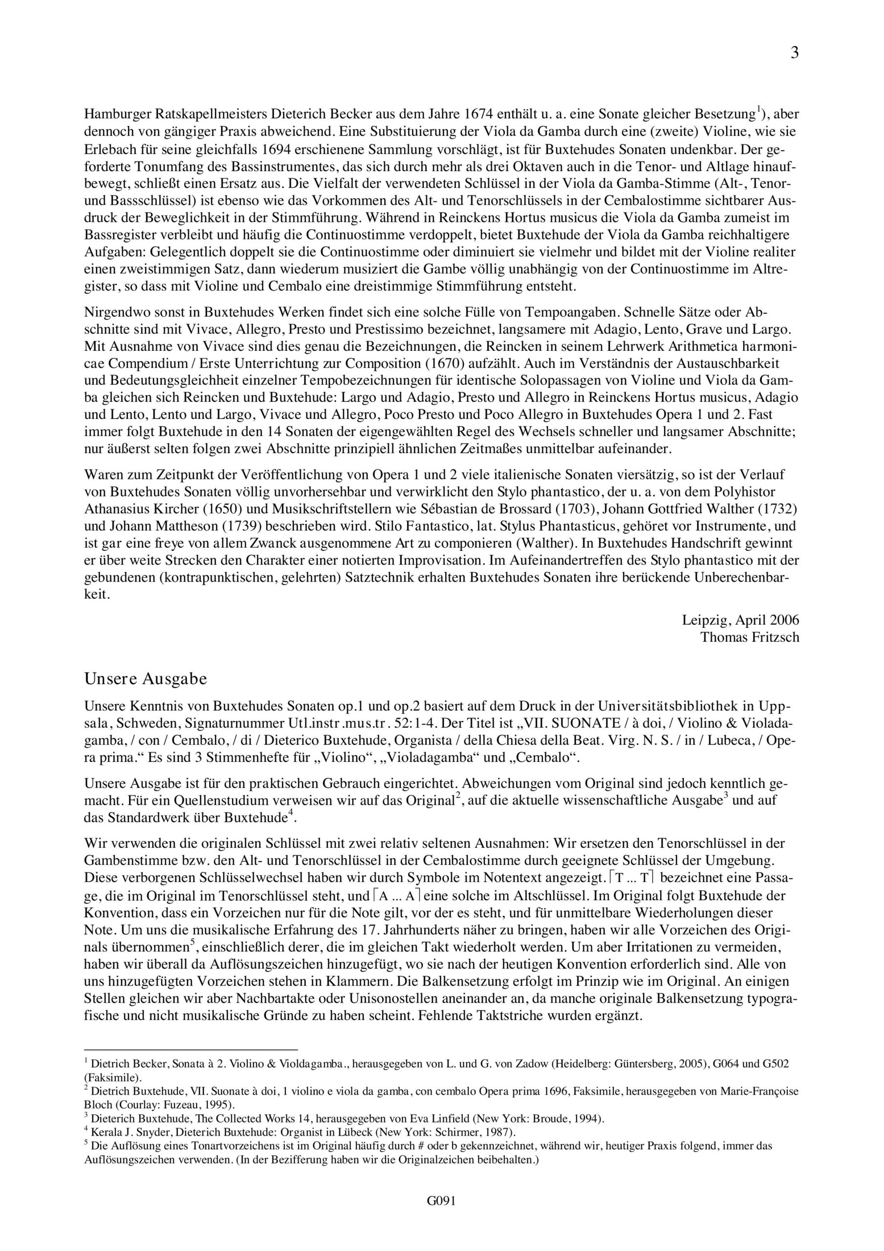 Dieterich Buxtehude (~1637-1707) VII. Suonate à doi, Violino & Violadagamba, con Cembalo, Opera prima. Hamburg ~1694 – für Violine, Viola da Gamba und Cembalo