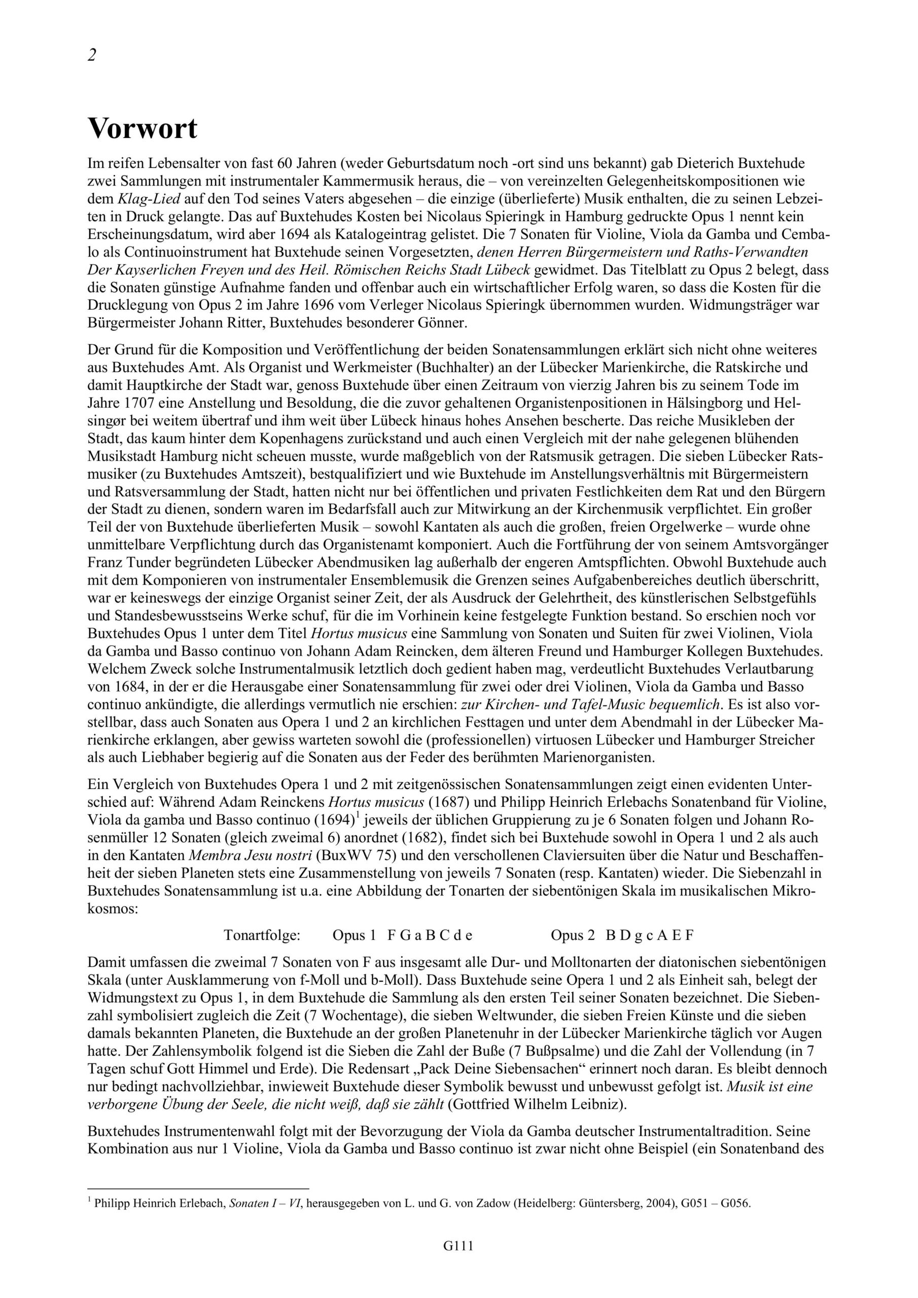 D. Buxtehude, VII. Suonate à due, BuxWV 259, Sonata B-Dur op.2,1, V+VdG+Bc, Partitur, 3 Stimmen, 2. Partitur mit Aussetzung, 56 S., ISMN 979-0-50174-111-3