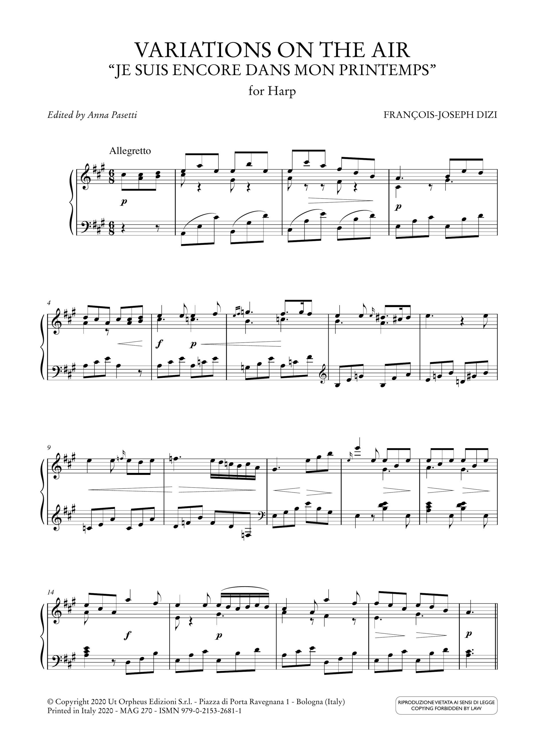 Dizi, François Joseph: Variations on the Air “Je suis encore dans mon printemps” per Arpa