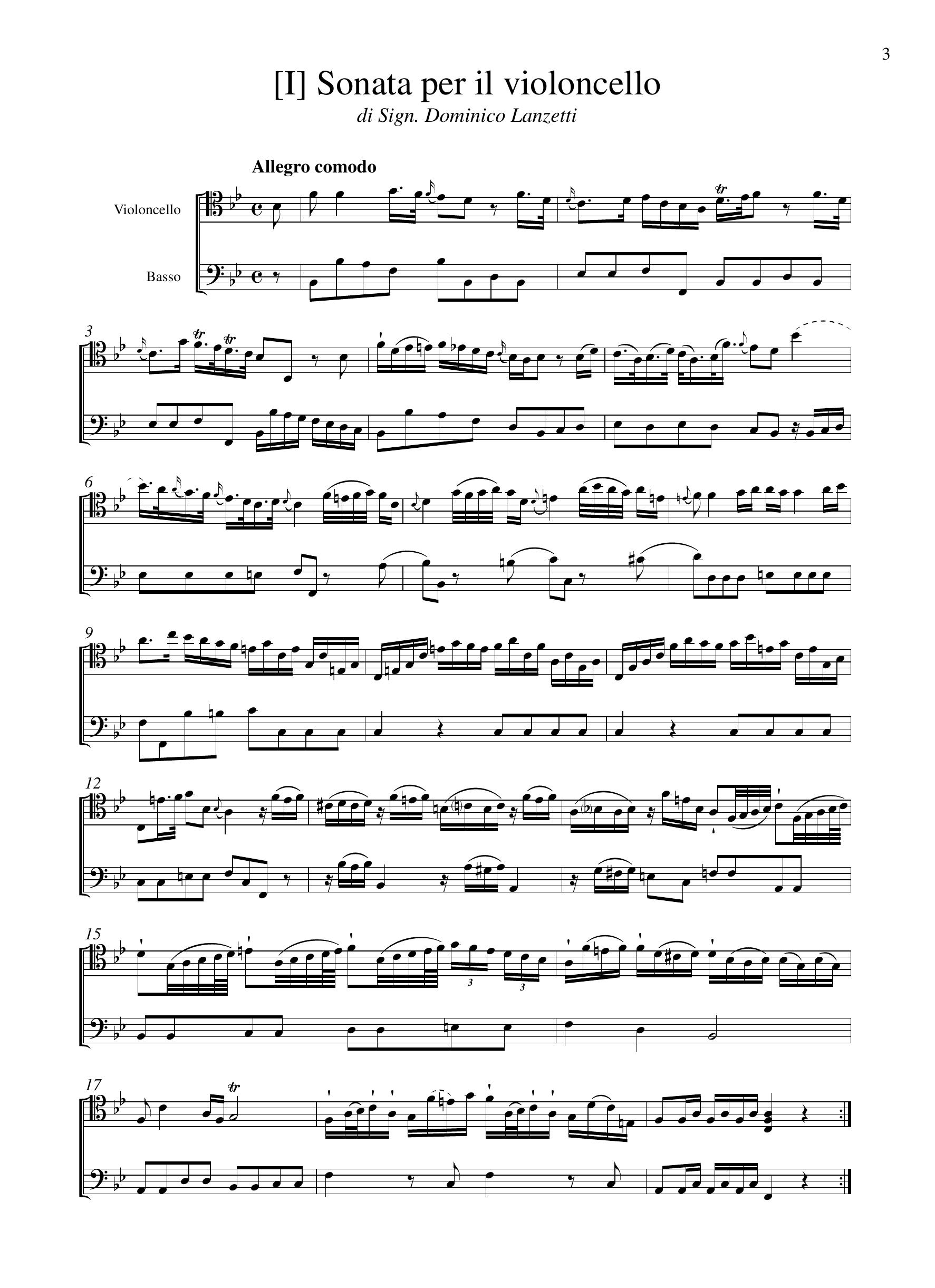 Domenico Lanzetti (sec.XVIII – sec. XIX) – 2 Sonate manoscritte (Ms. D-B) per violoncello e b.c.