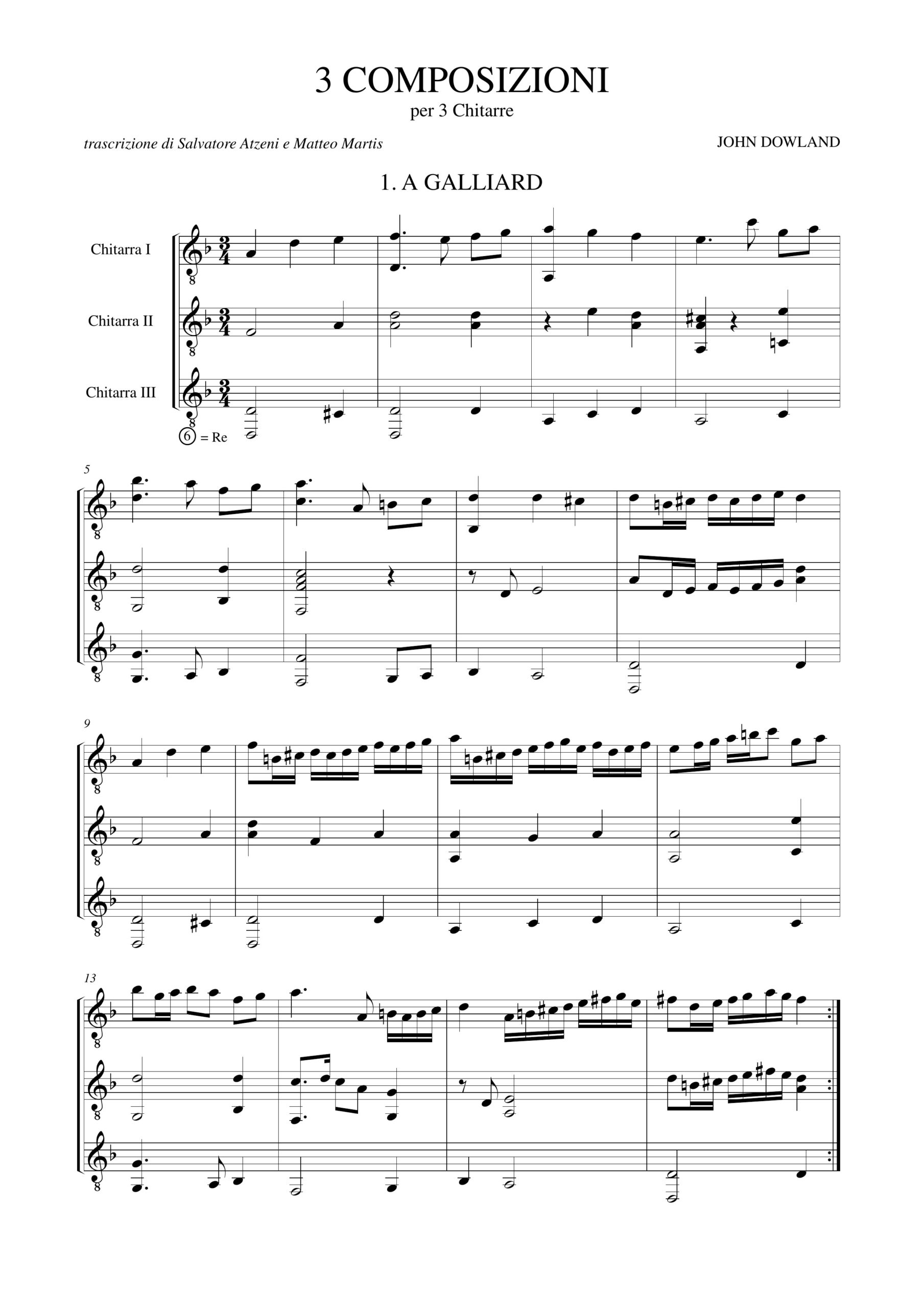 Dowland, John: 3 composizioni (A Galliard, The Frog Galliard, Fantasia) per 3 Chitarre