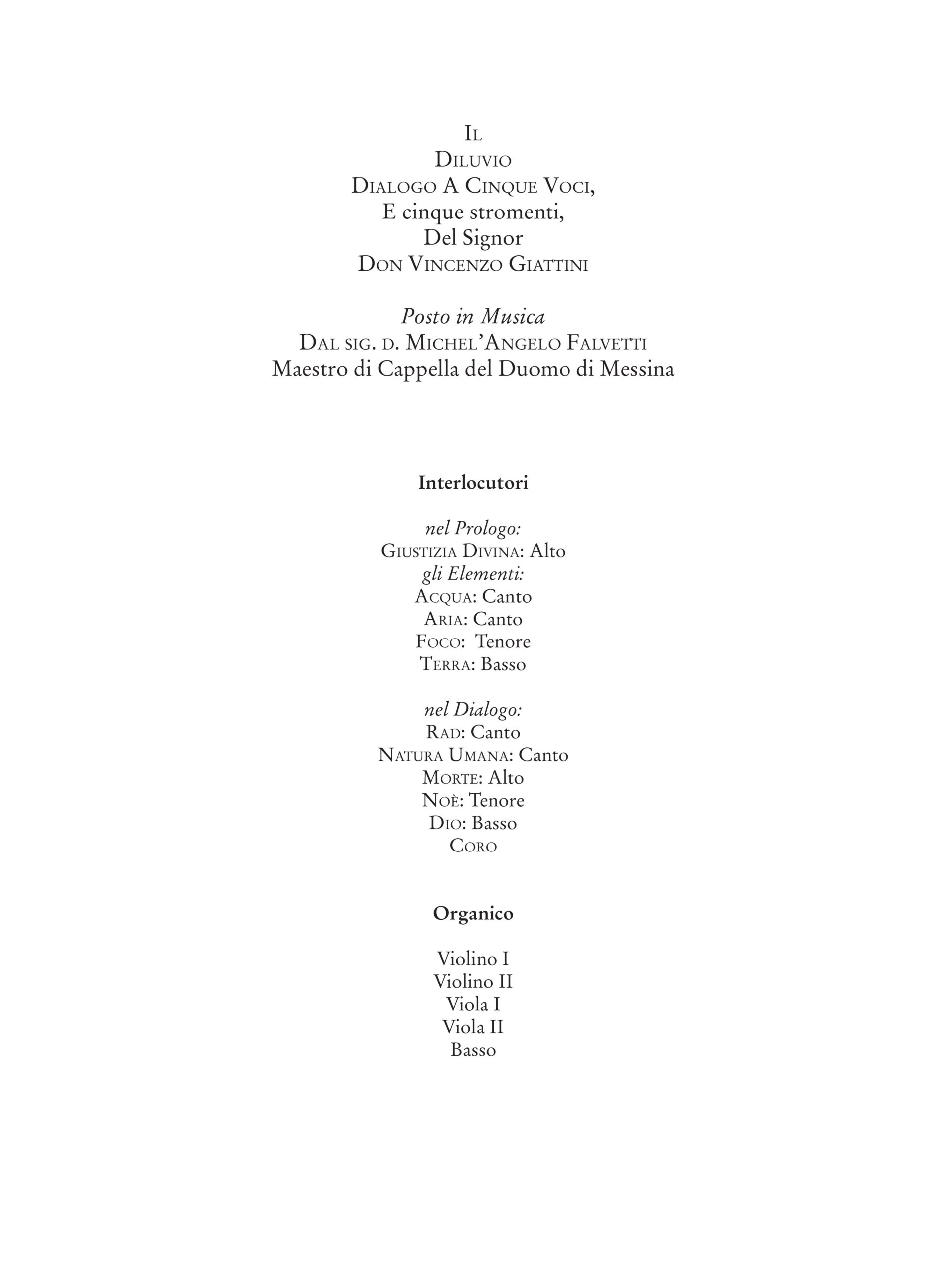 Falvetti, Michelangelo: Il Diluvio Universale. Dialogo a 5 voci (1682) [Partitura]