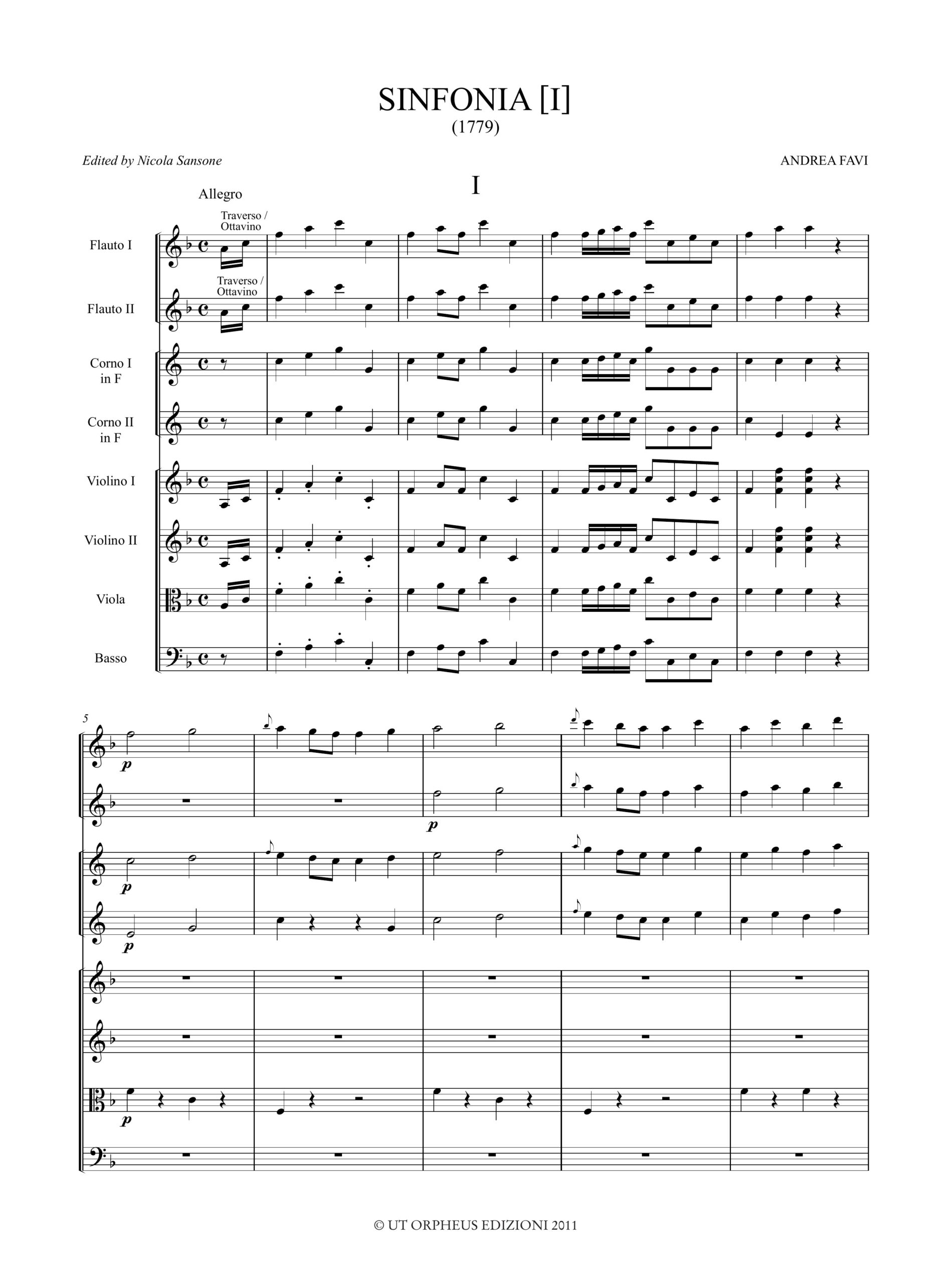 Favi, Andrea: Sinfonia [I] (1779) per 2 Flauti Dolci (Flauti Traversi), 2 Corni, 2 Violini, Viola e Basso