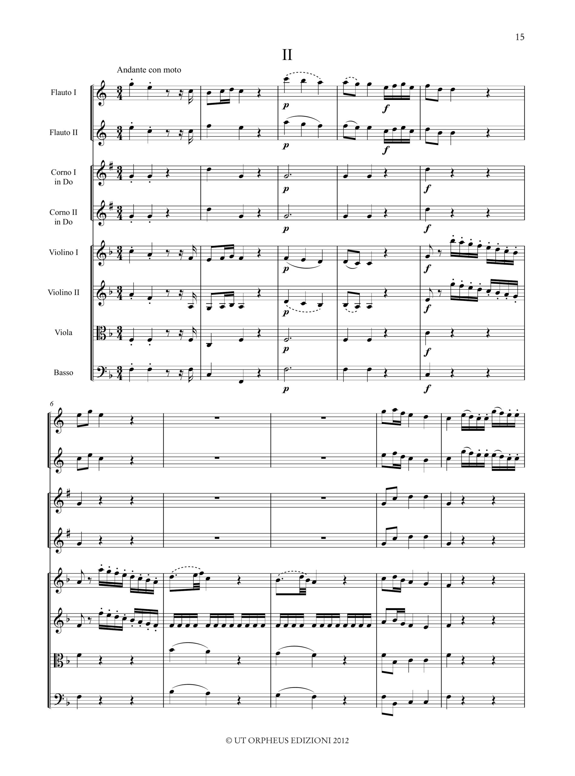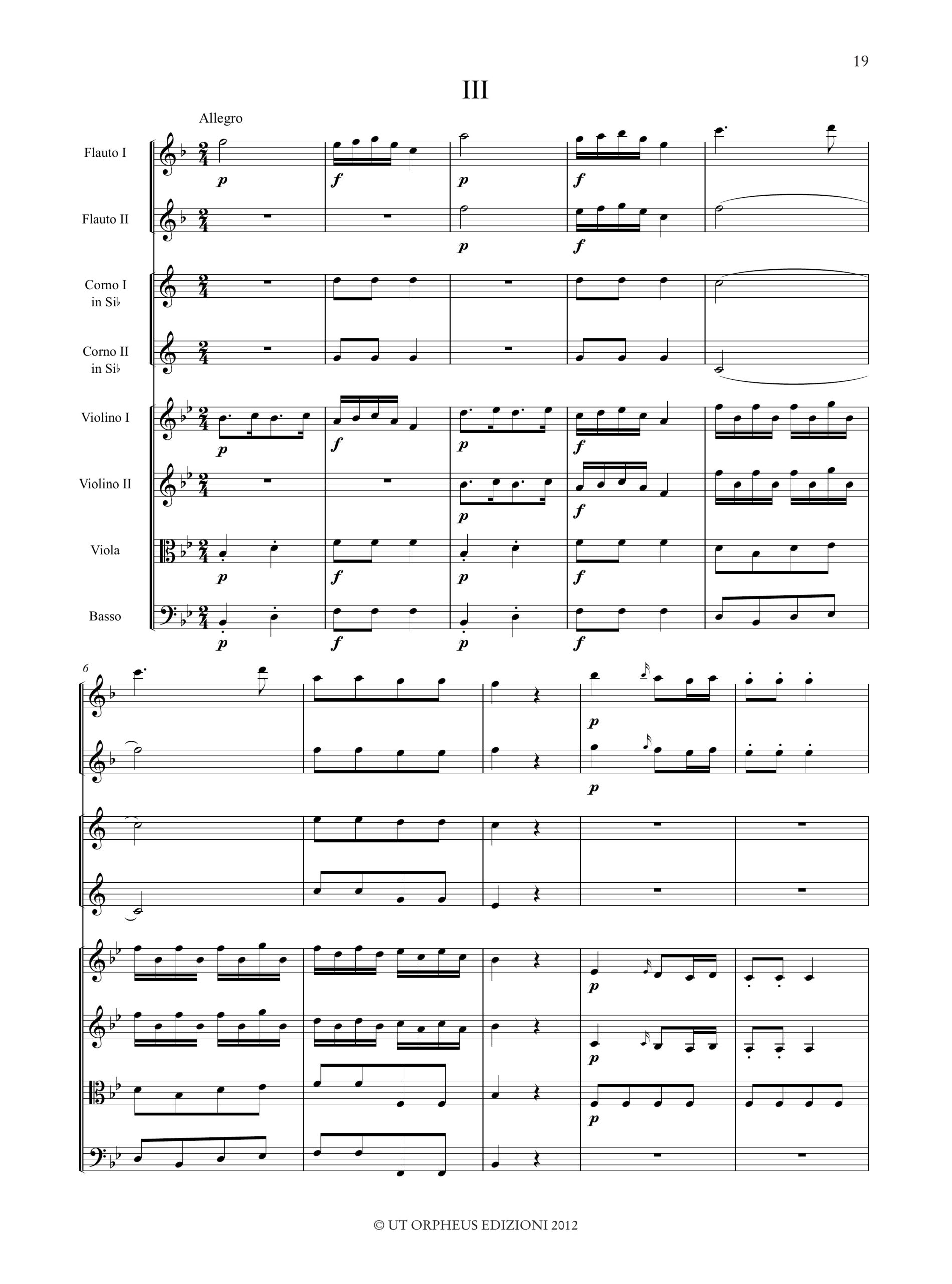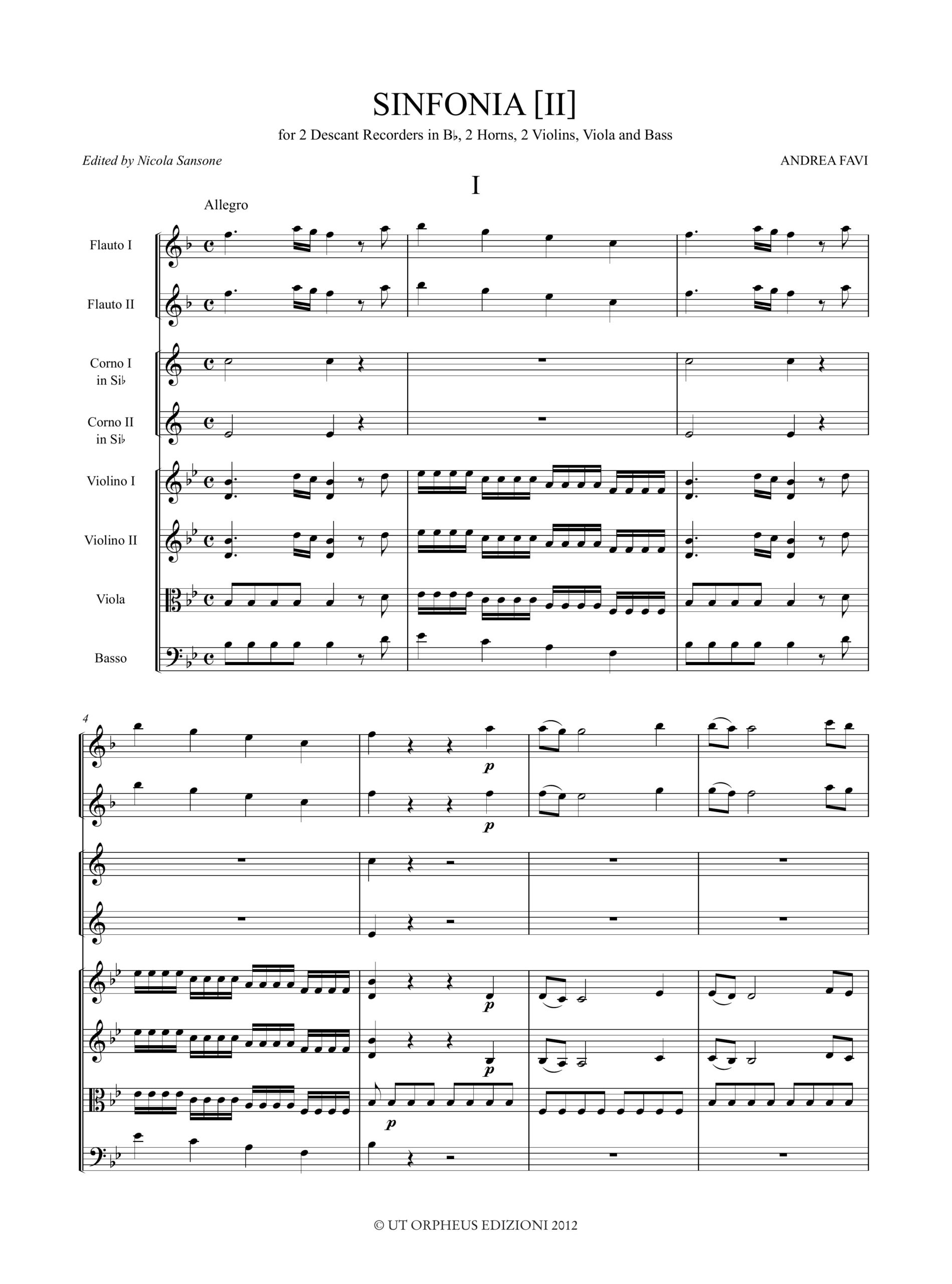 Favi, Andrea: Sinfonia [II] per 2 Flauti Dolci Soprani in Si bemolle, 2 Corni, 2 Violini, Viola e Basso