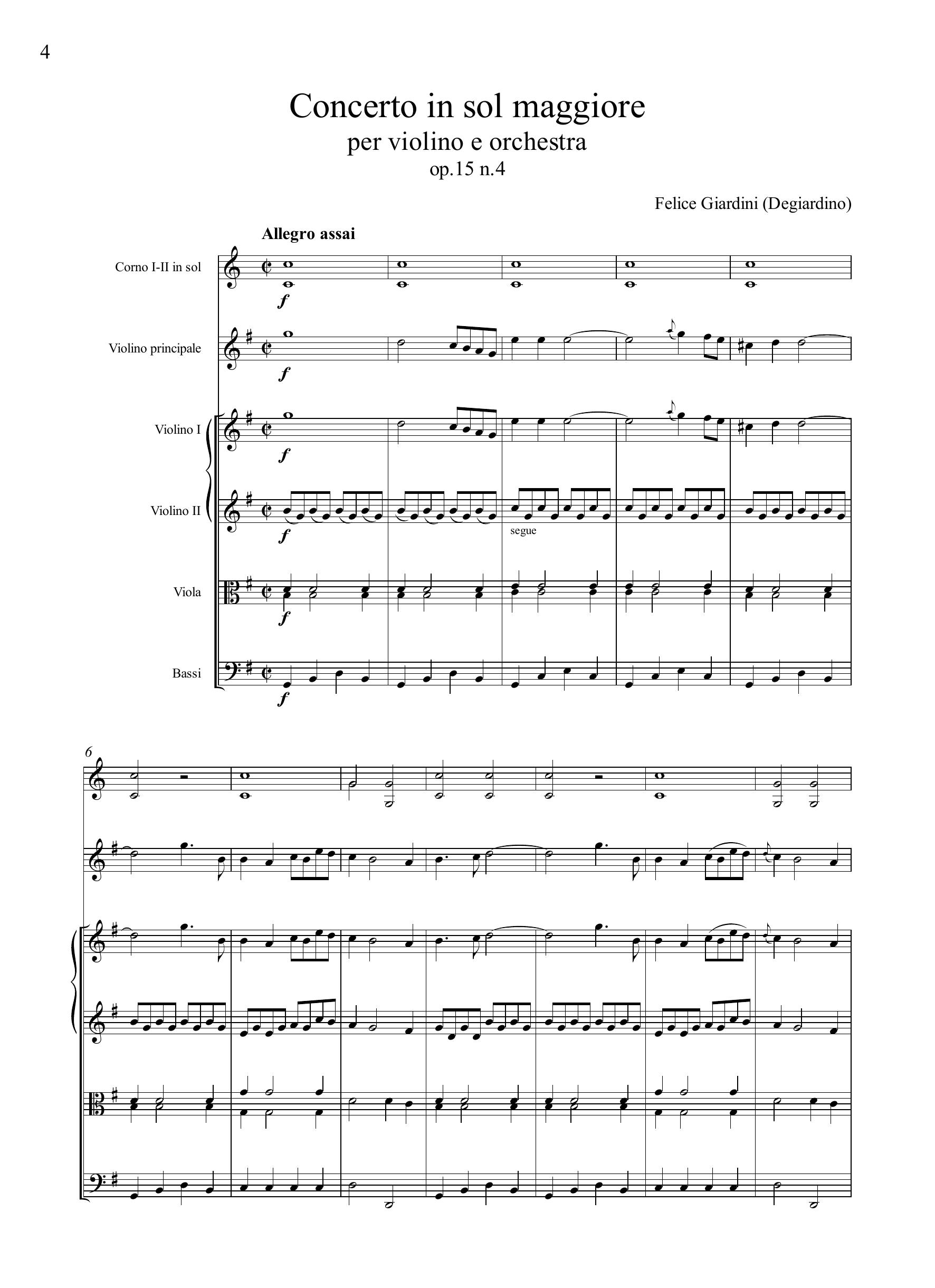 Felice Giardini (Degiardino)(1716 – 1796) – Concerto in sol maggiore op.15 n.4 per violino e orchestra (2 horns and strings)