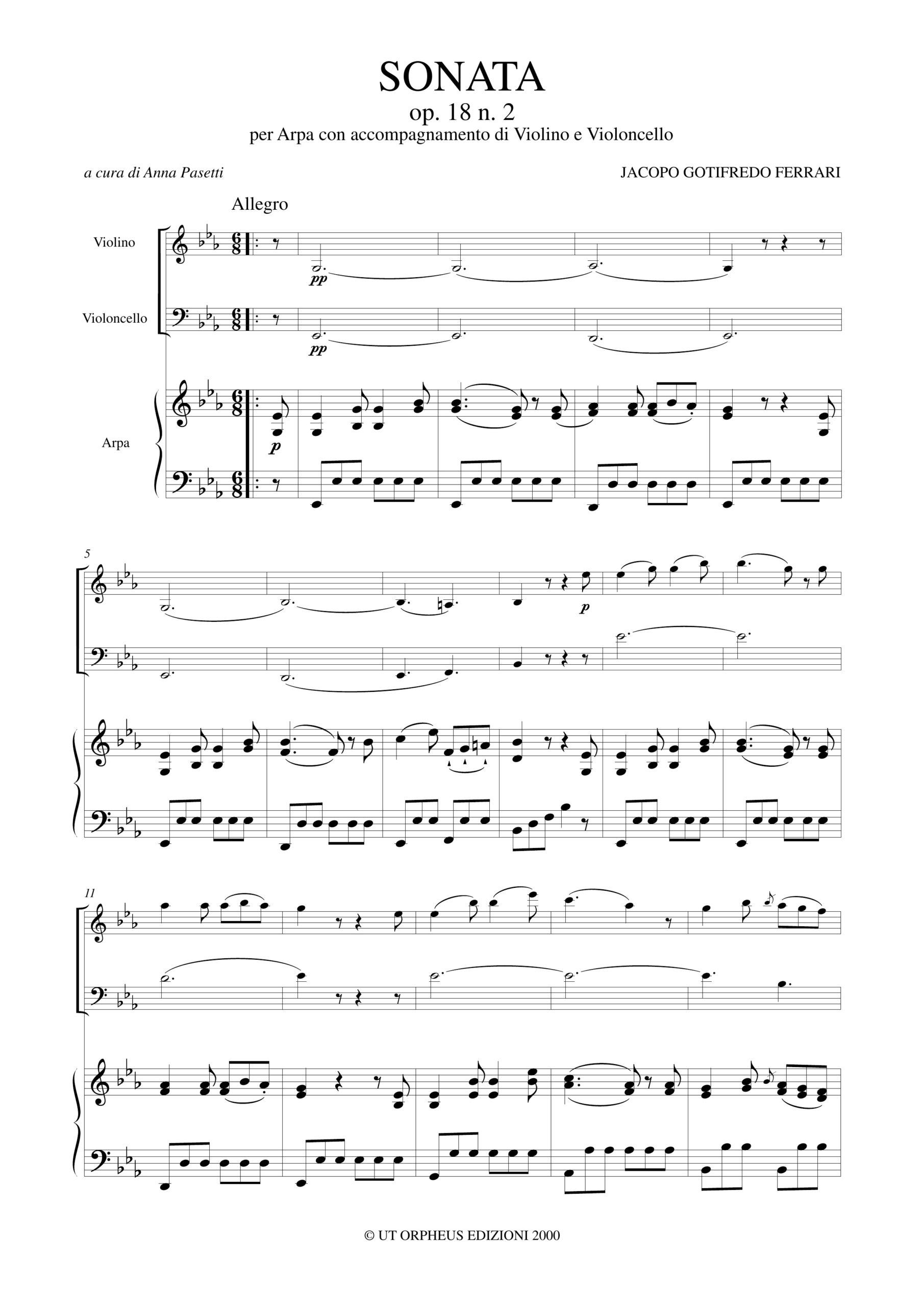 Ferrari, Jacopo Gotifredo: Sonata Op. 18 N. 2 per Arpa, con accompagnamento di Violino e Violoncello