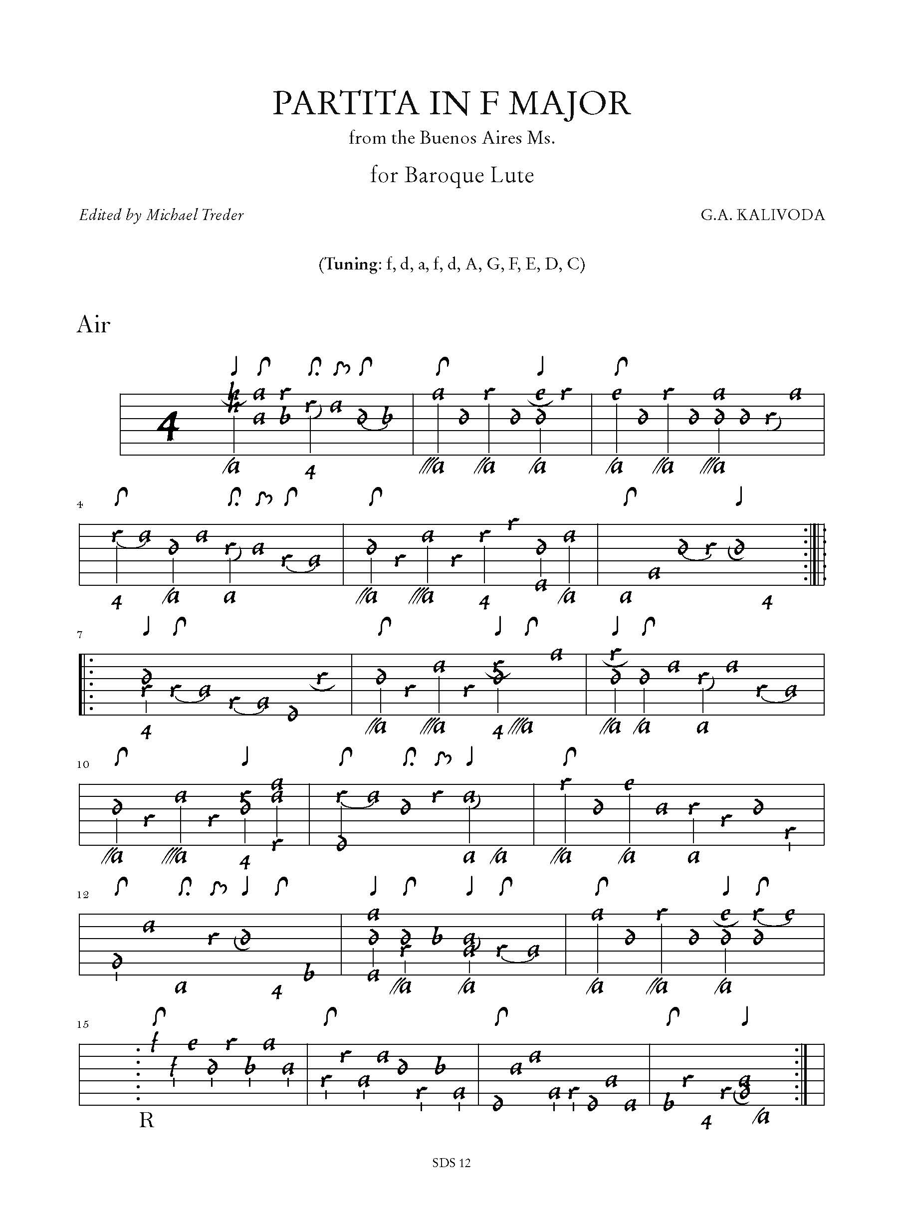 Georg Adalbert Kalivoda – Partita in Fa maggiore (dal ms. di Buenos Aires) per Liuto Barocco
