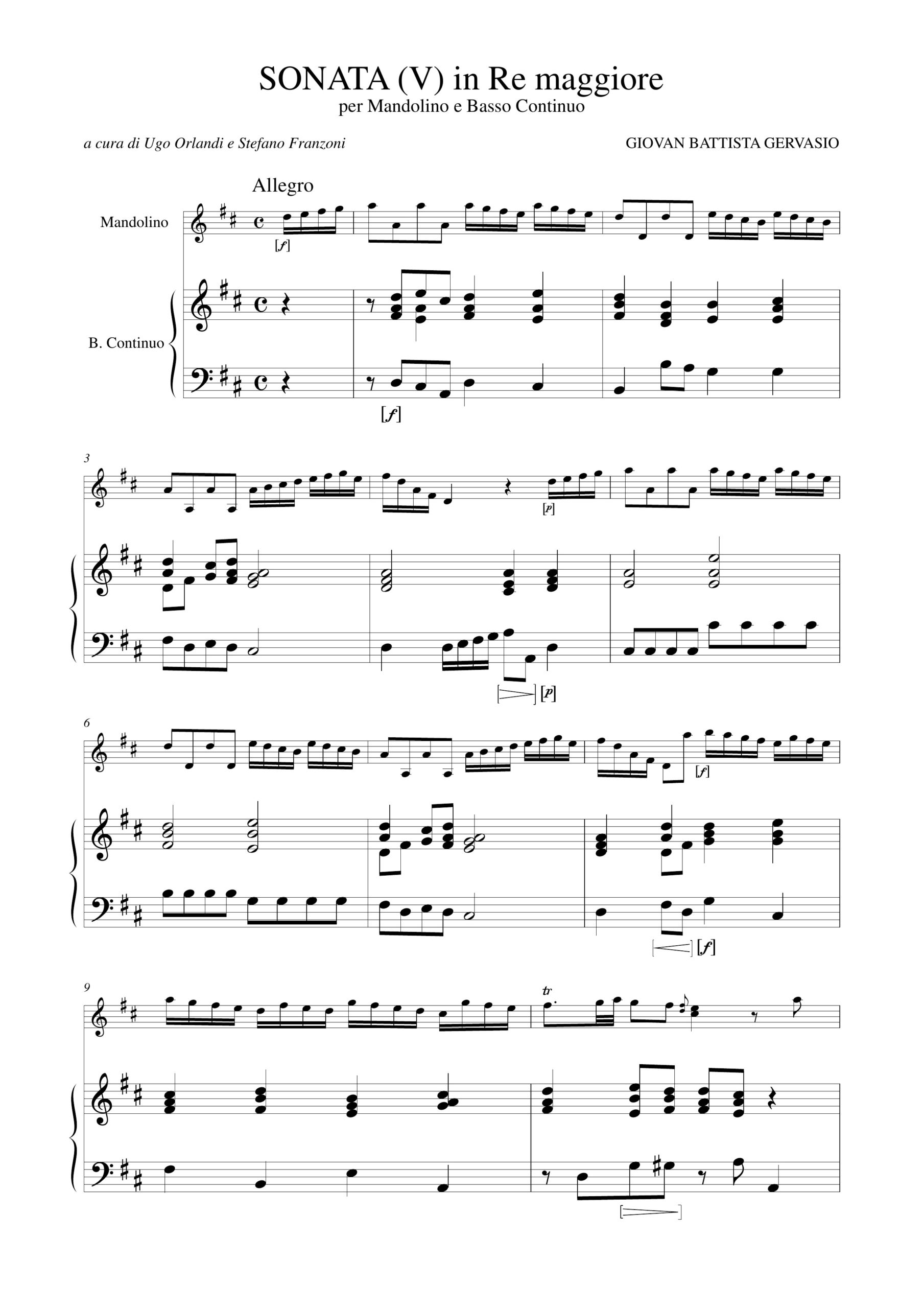 Gervasio, Giovan Battista: Sonata (V) in Re maggiore per Mandolino e Basso Continuo