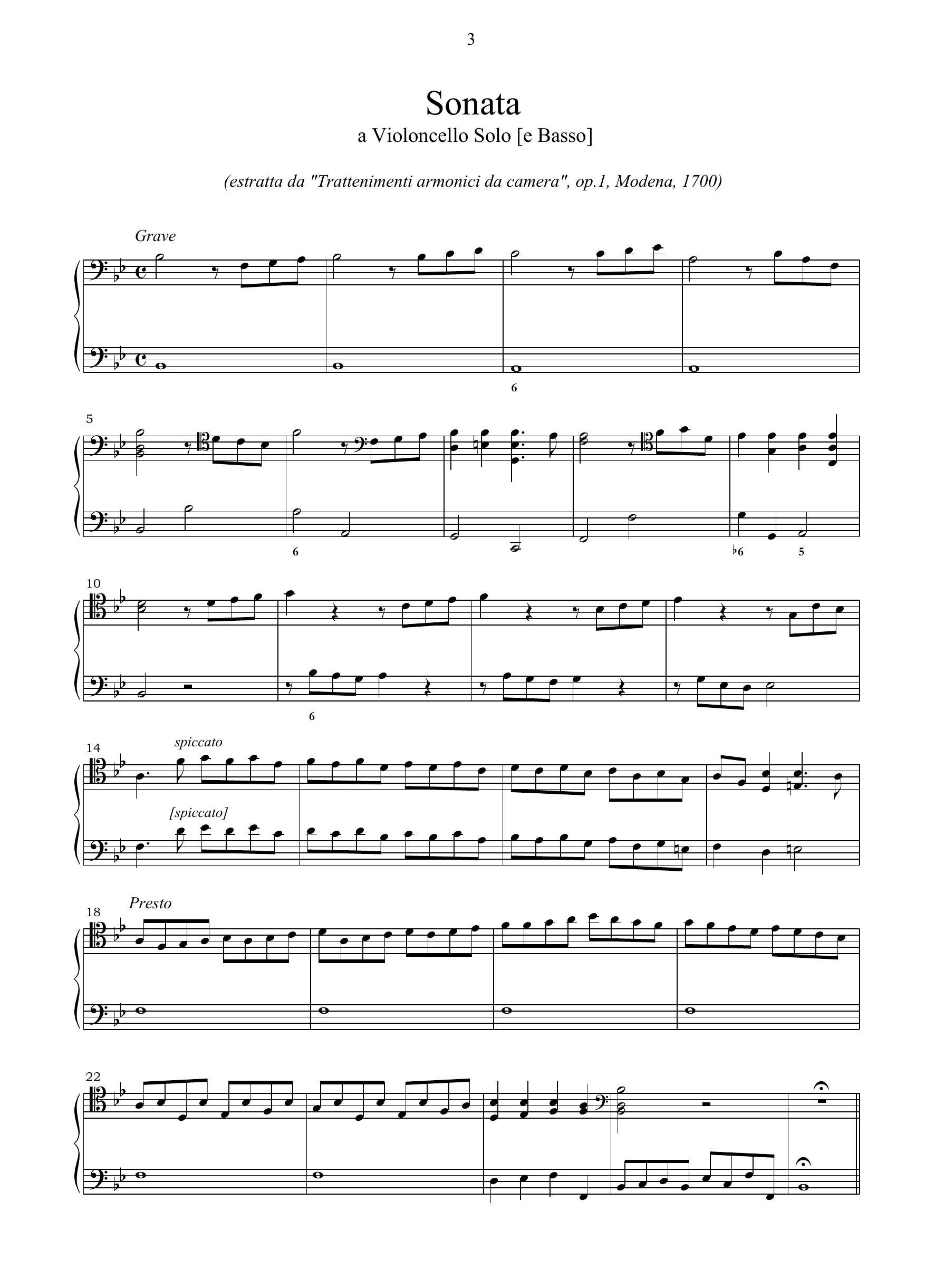 Giacomo Cattaneo – Sonata (Modena, 1700) per violoncello e b.c.