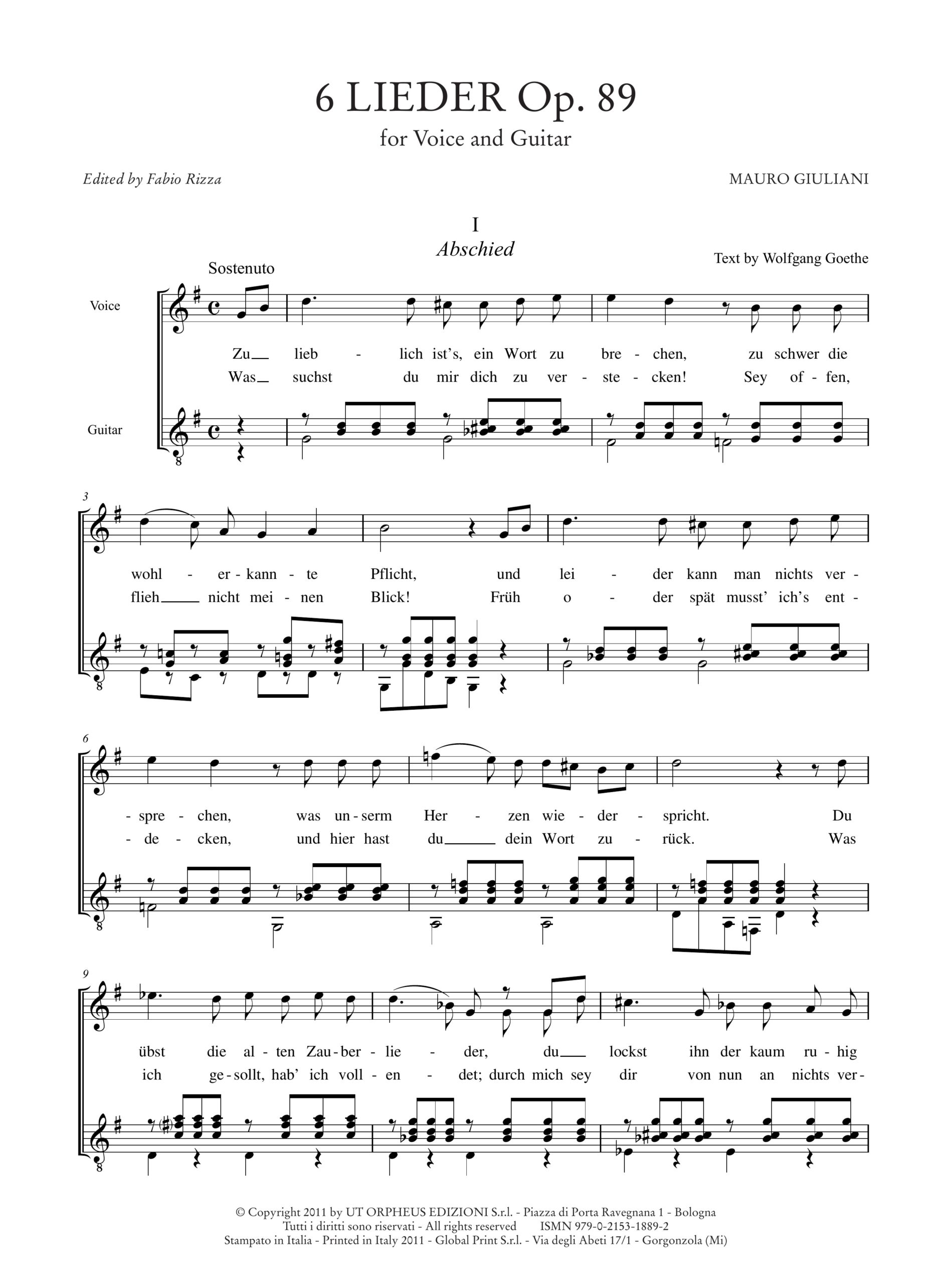 Giuliani, Mauro: 6 Lieder Op. 89 per Voce e Chitarra (Pianoforte)