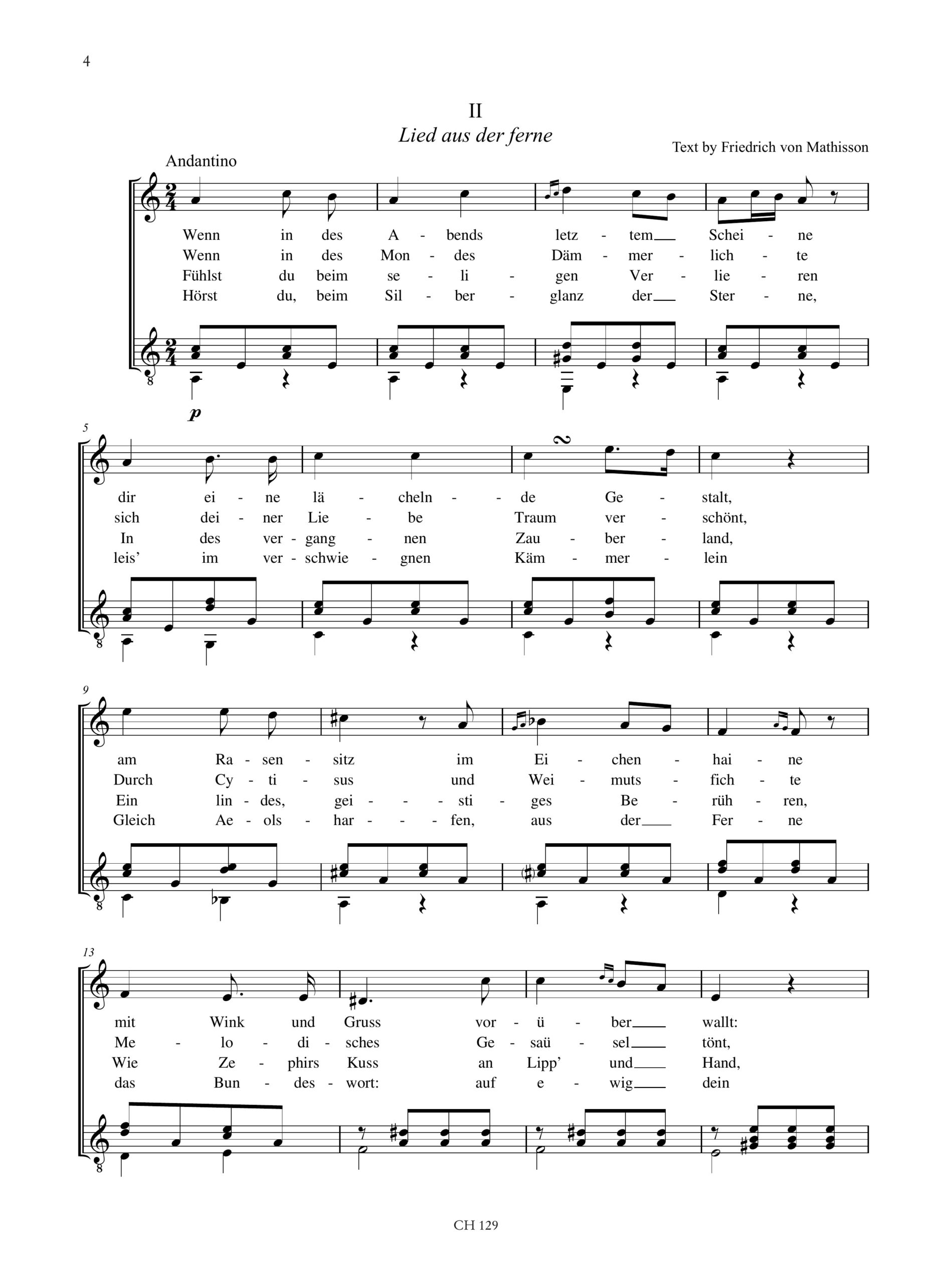Contenuto e Descrizione: Abschied (Goethe); Lied aus der Ferne (Matthisson); Abschied (Schiller?); Lied (Steigentesch); Ständchen (Tiedge); An das Schicksal (Reissig)