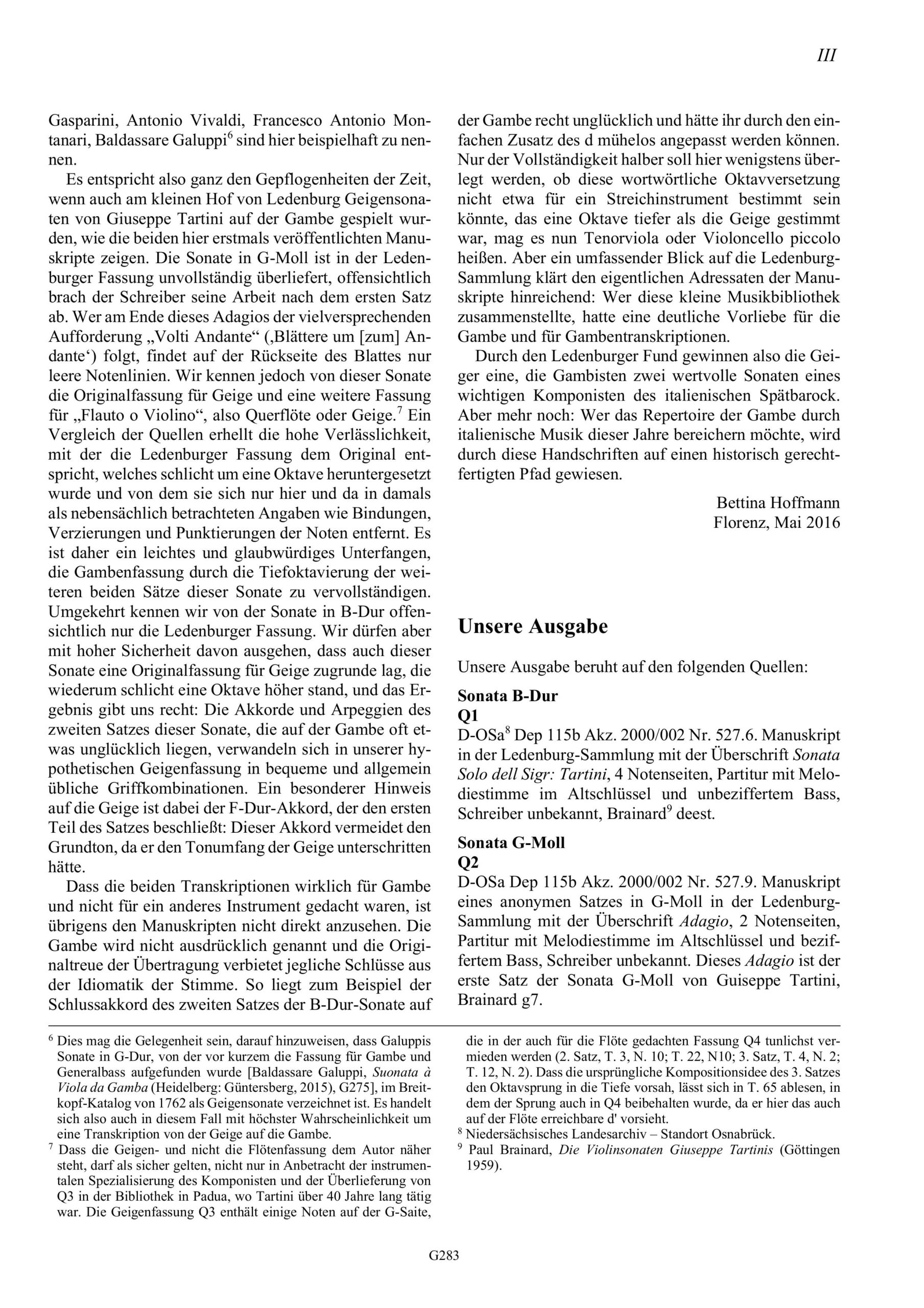 Transkriptionen von Violinsonaten Tartinis, wobei nur die Sonate