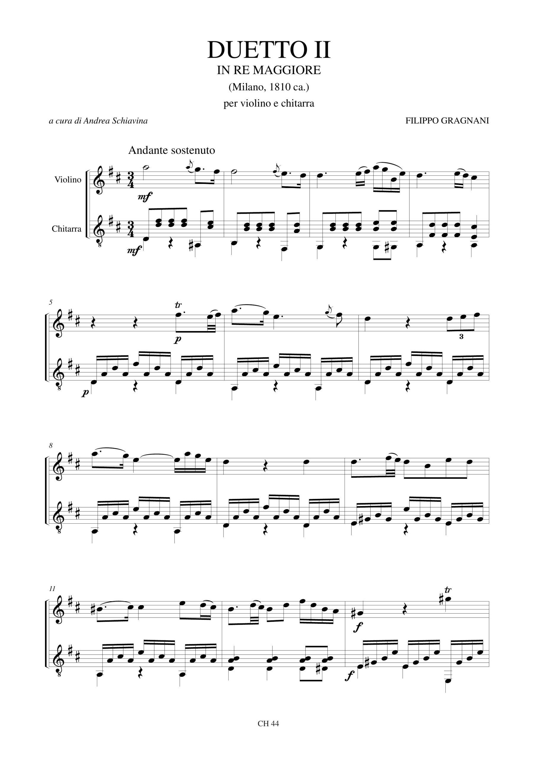 Gragnani, Filippo: Duetto II in Re maggiore per Violino e Chitarra