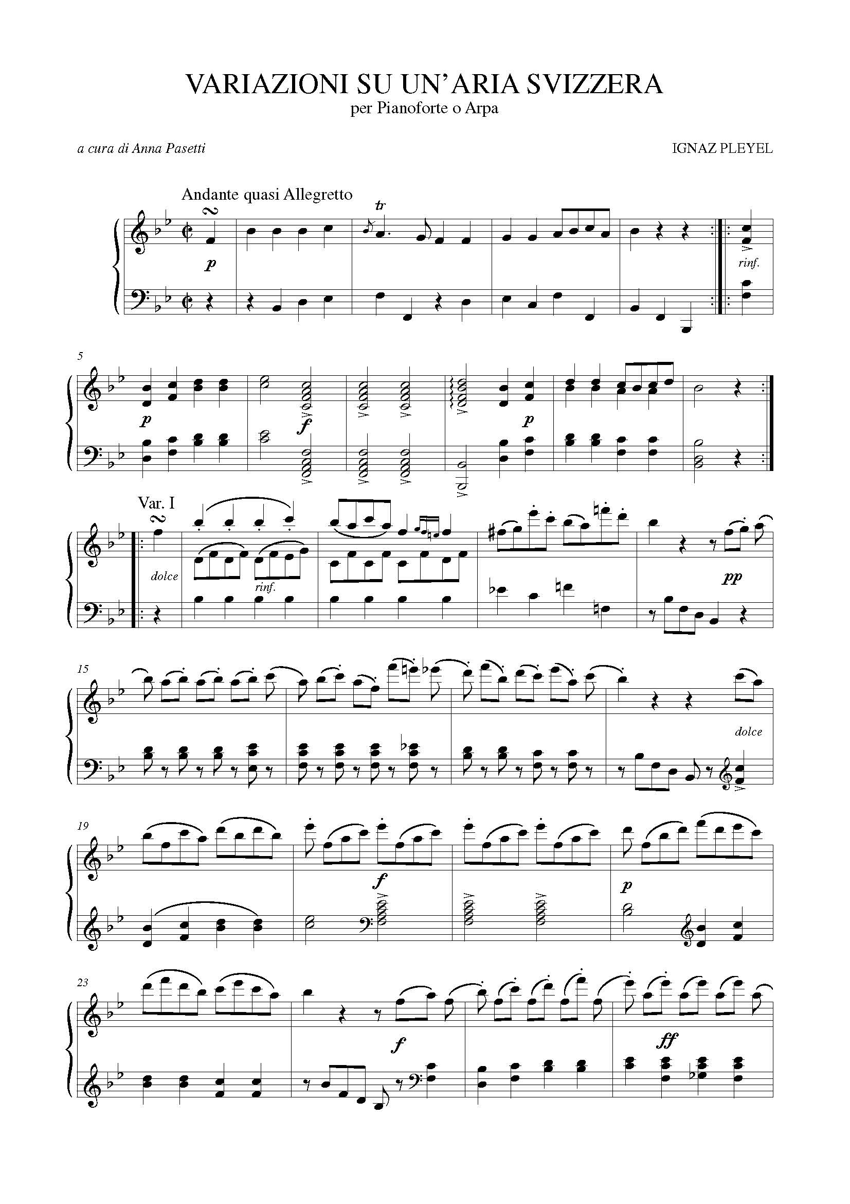 Variazioni su un’Aria svizzera per Pianoforte o Arpa