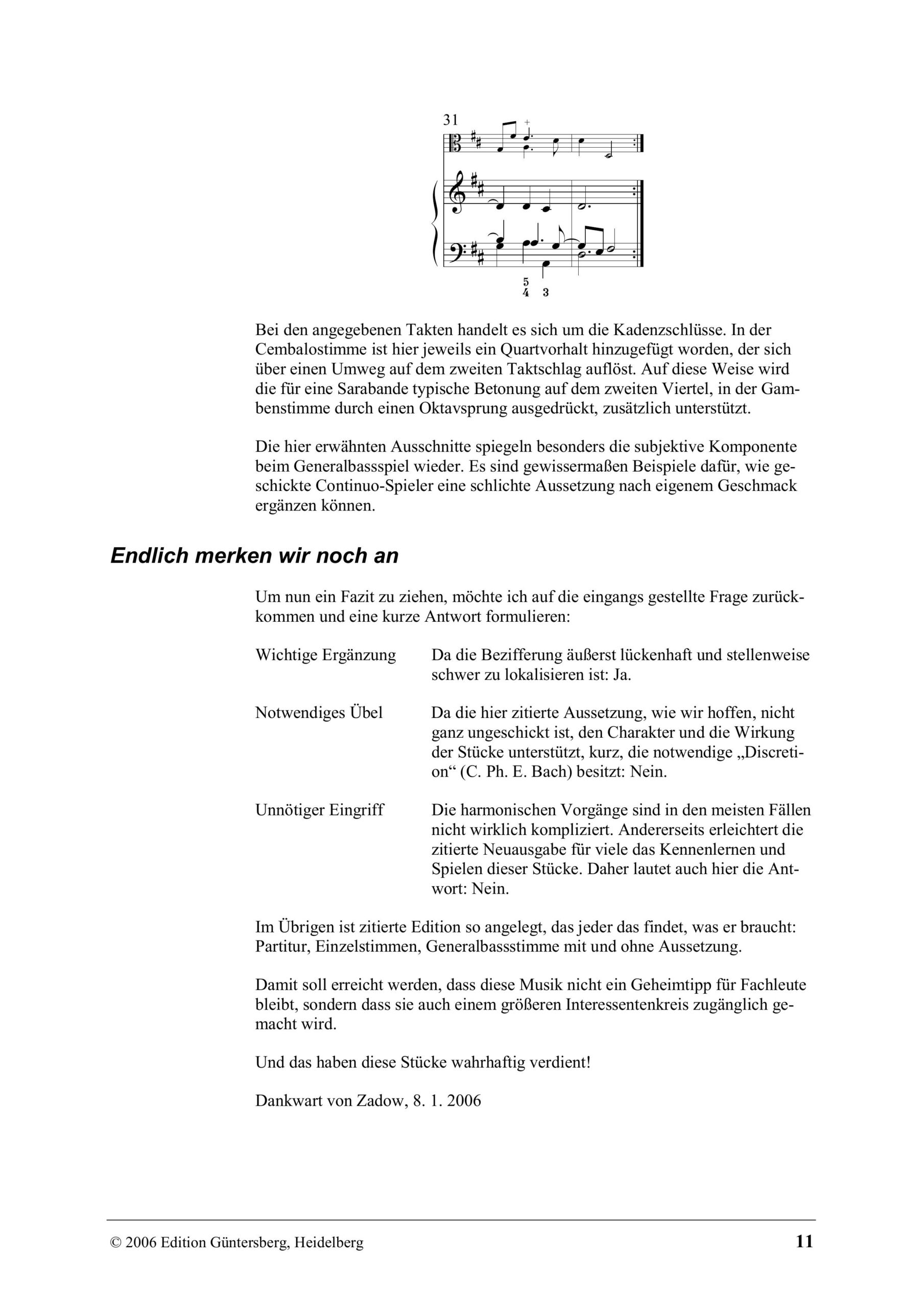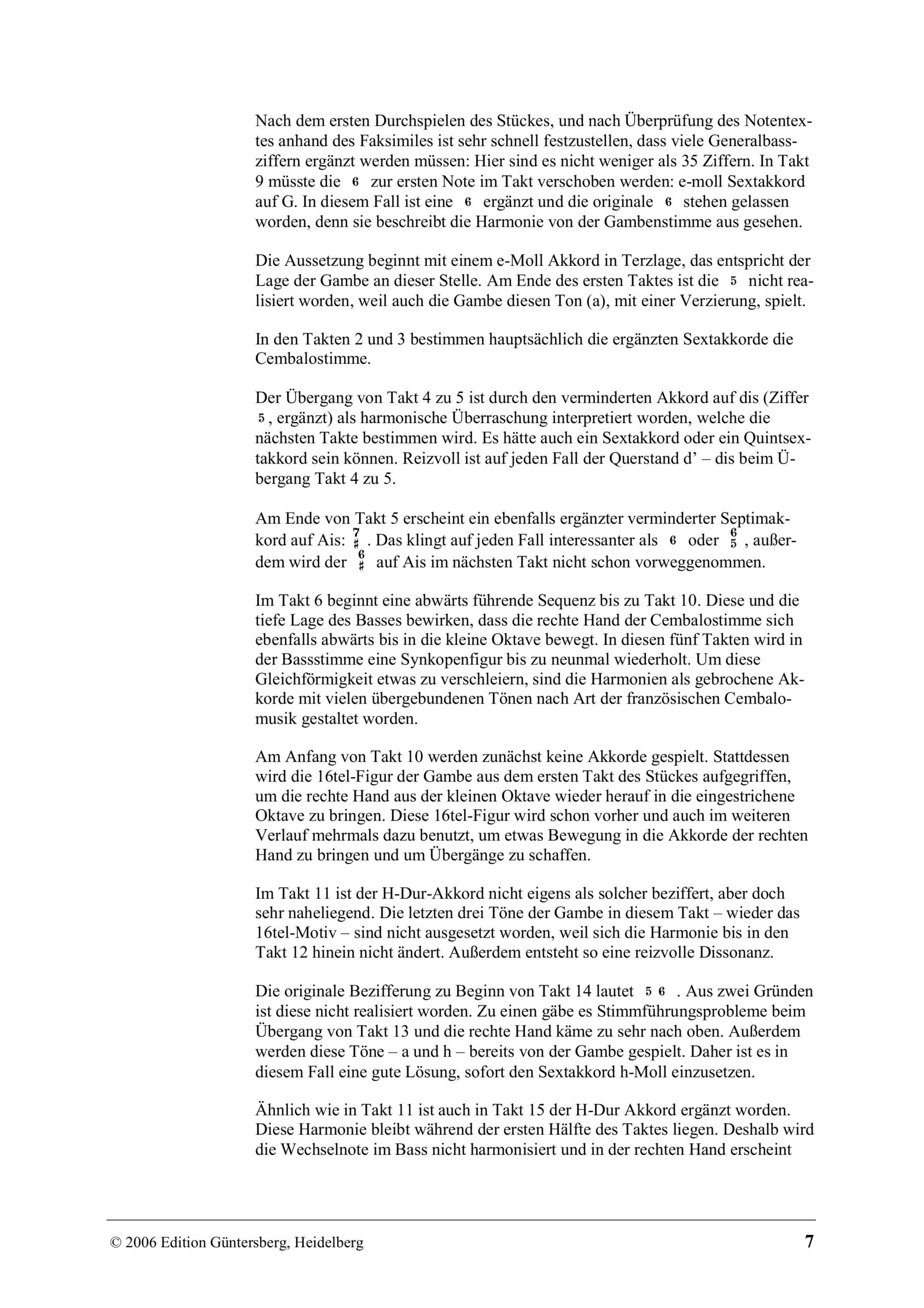 des stellenweise lückenhaft bezifferten Basses. Unsere Ausgabe ist auf