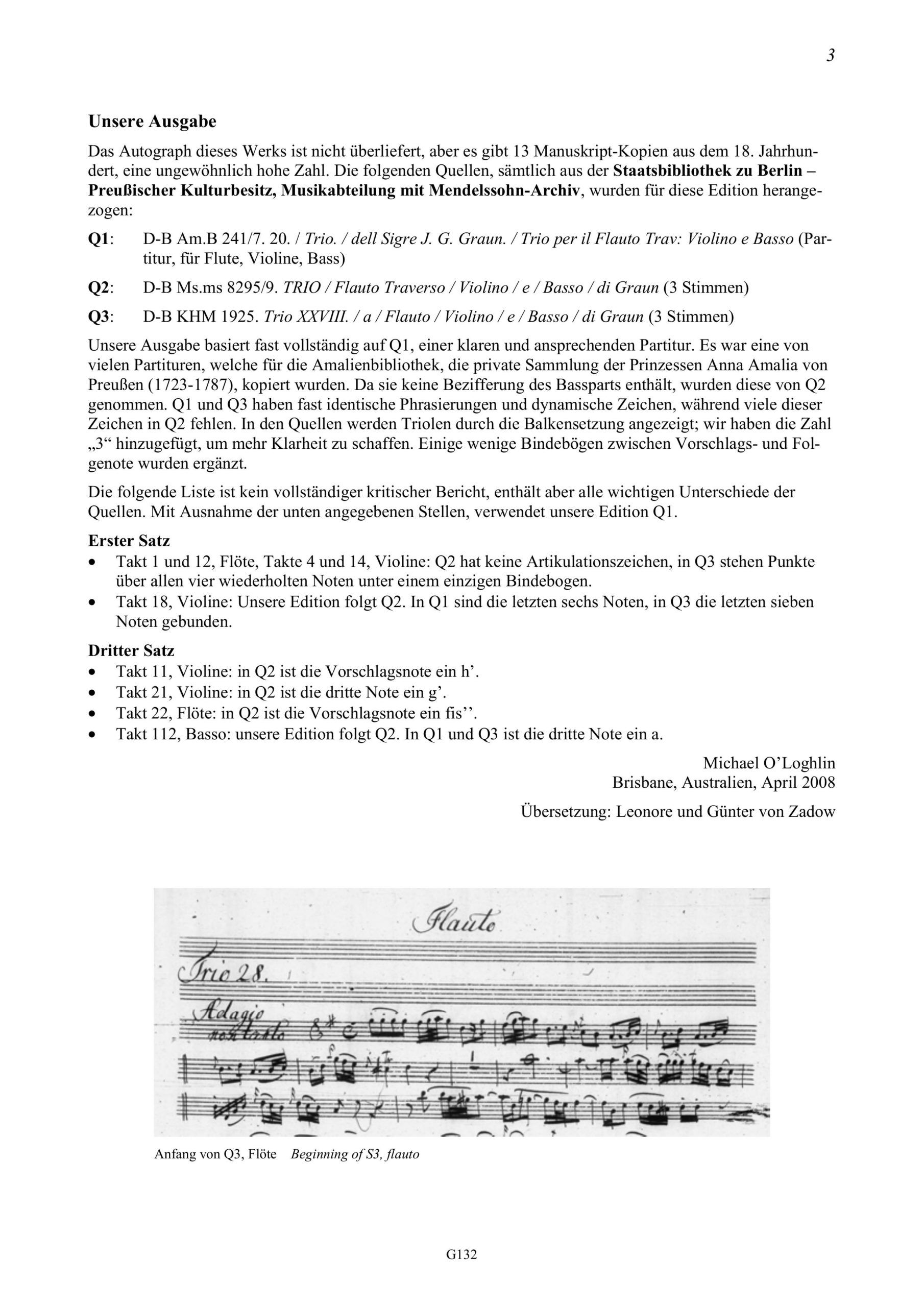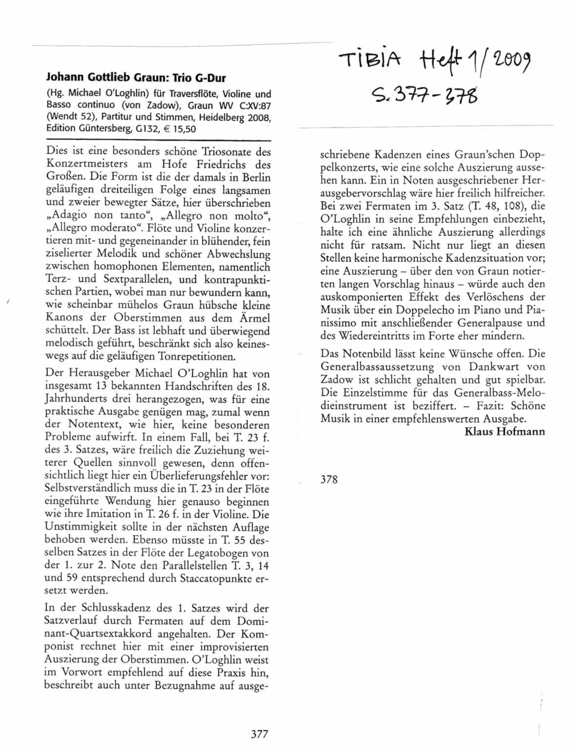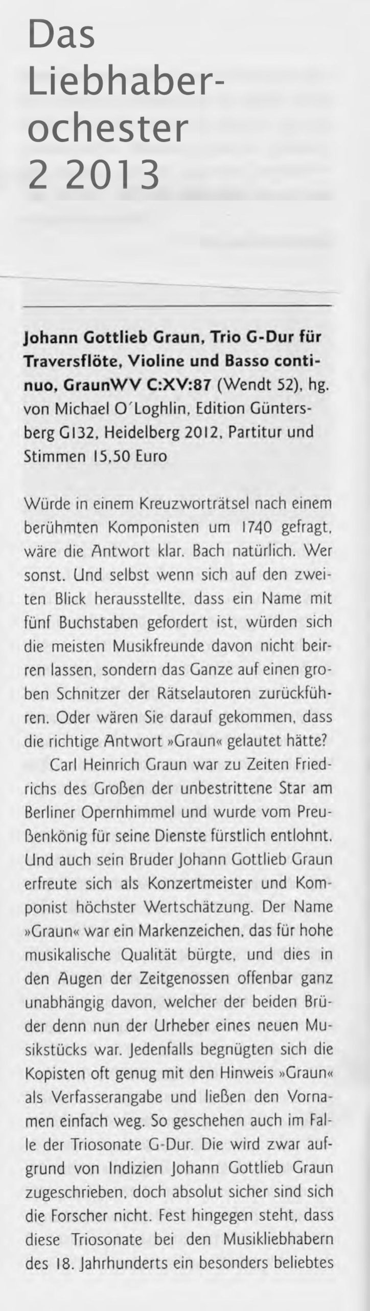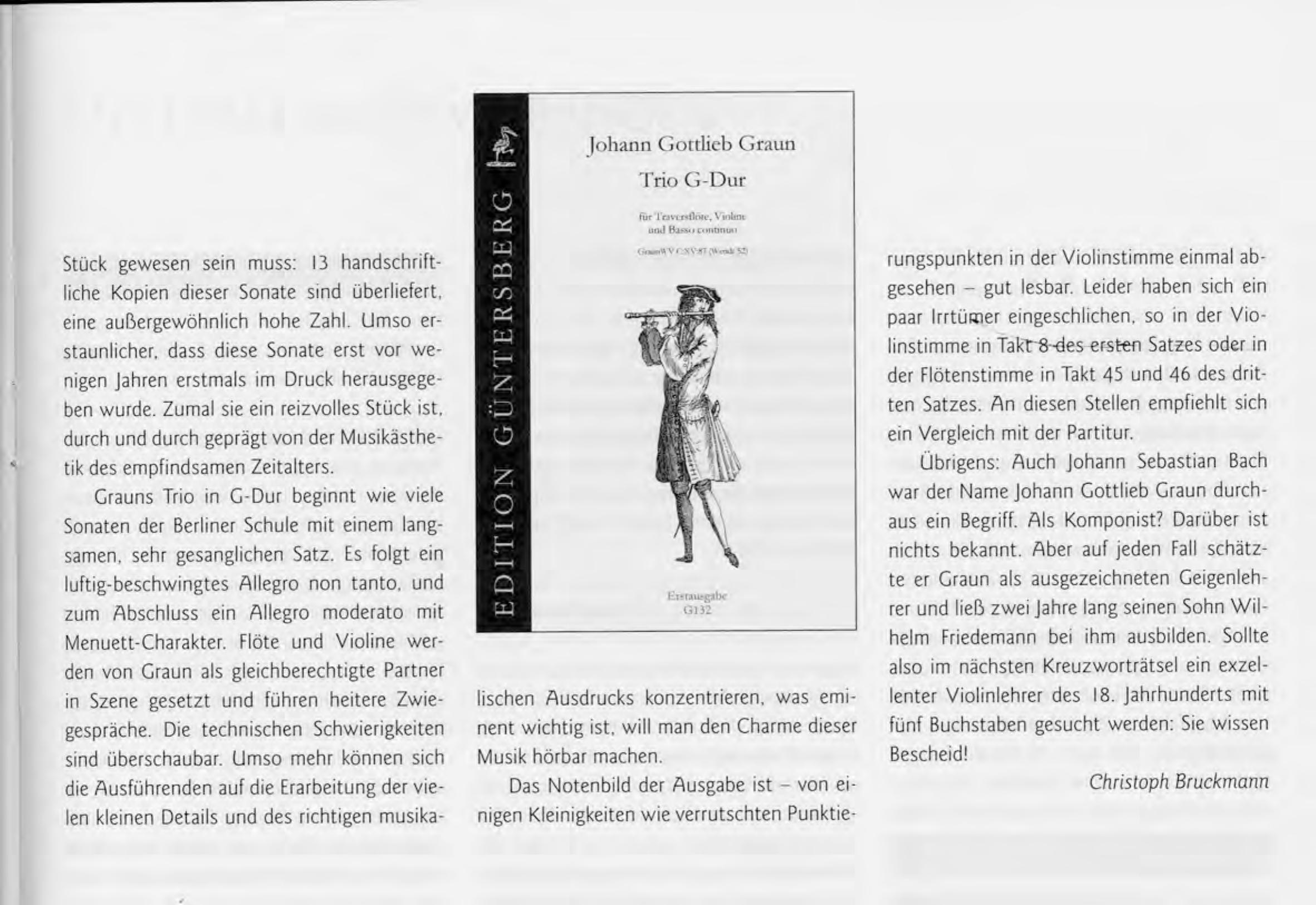 Johann Gottlieb Graun (1701/02-1771) Trio G-Dur für Traversflöte, Violine und Basso continuo – Besprechungen / Reviews