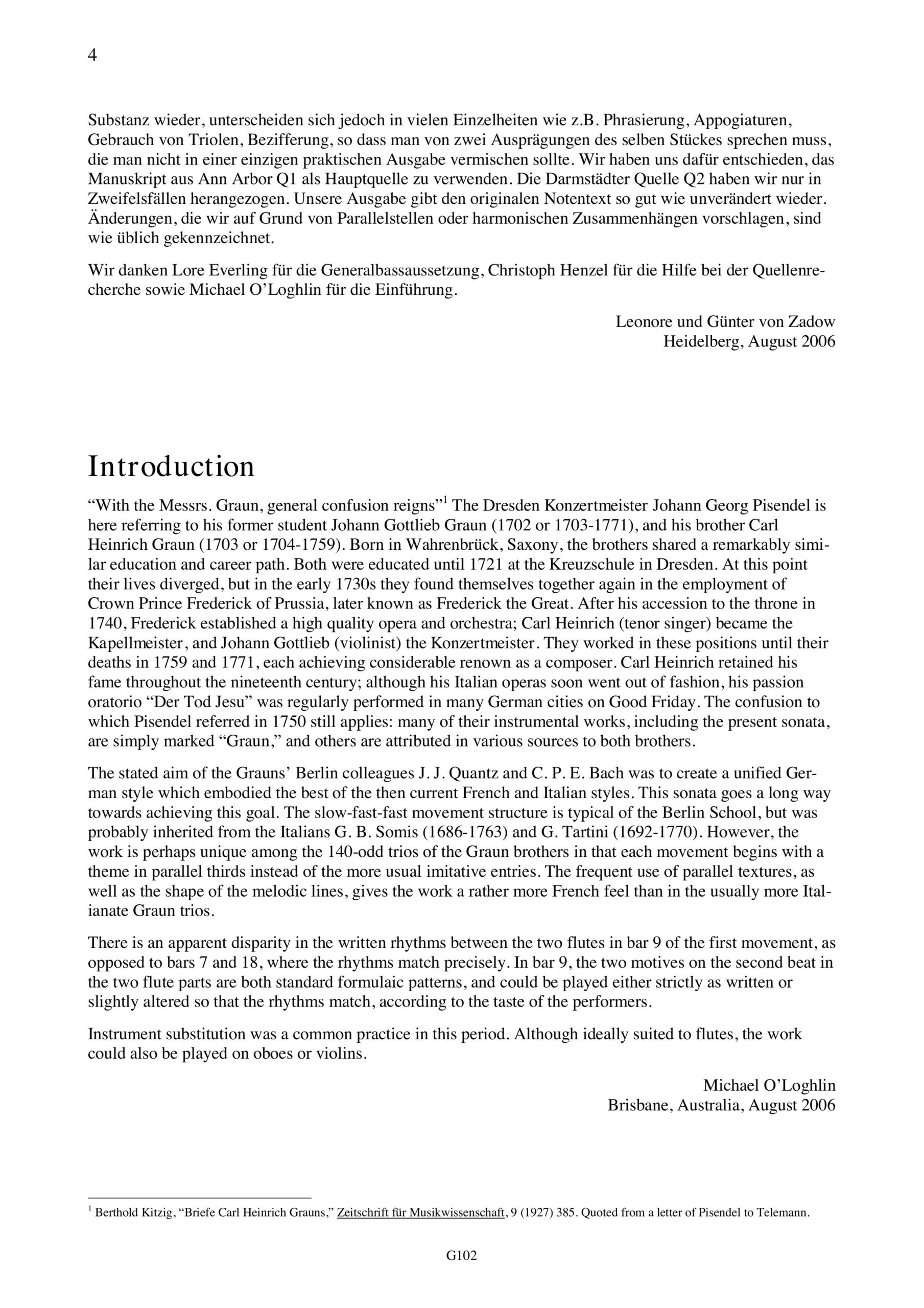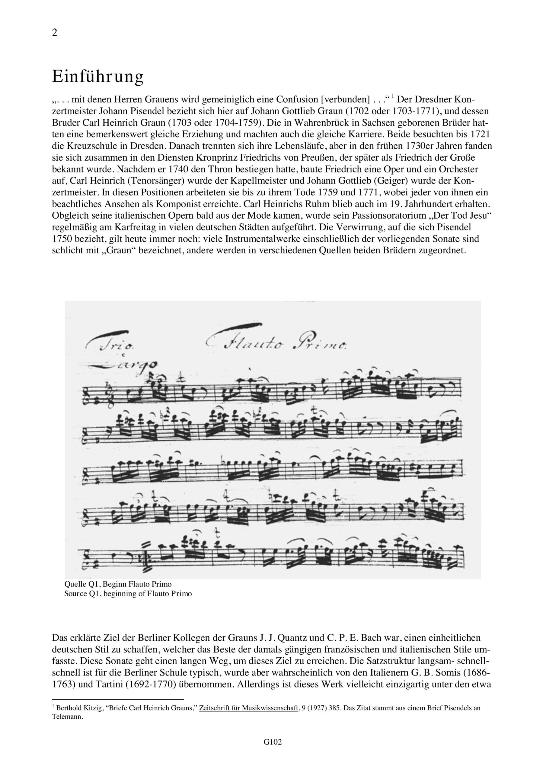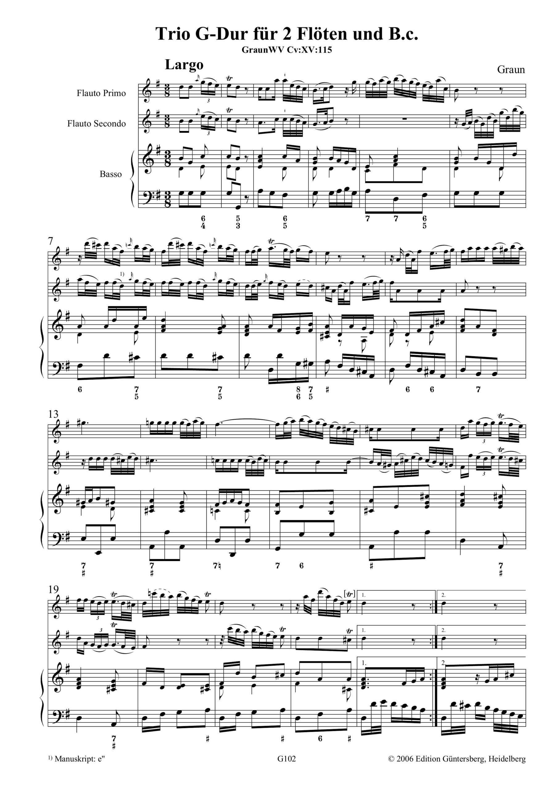 Johann Gottlieb oder Carl Heinrich Graun Trio G-Dur – für zwei Flöten und Basso continuo