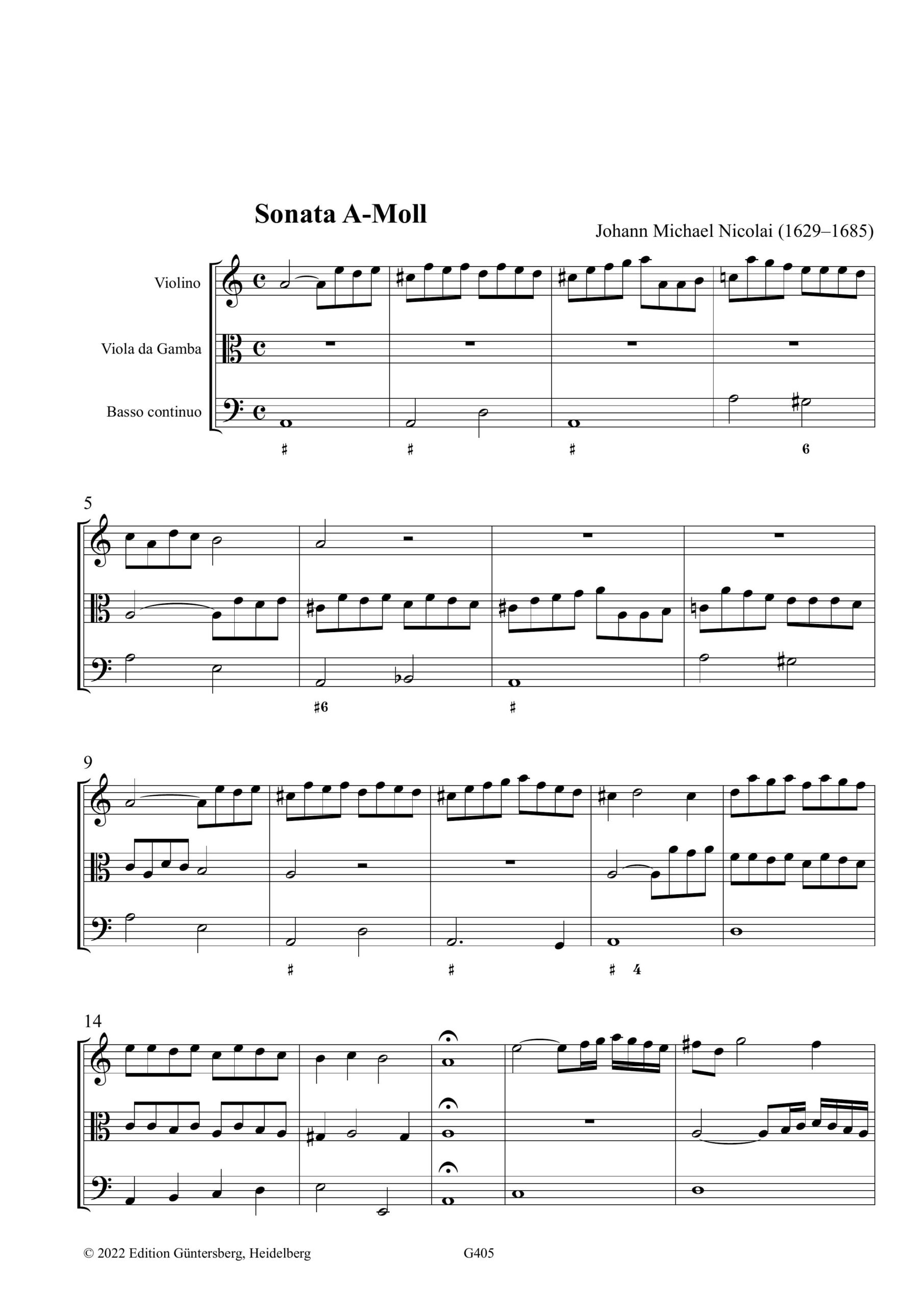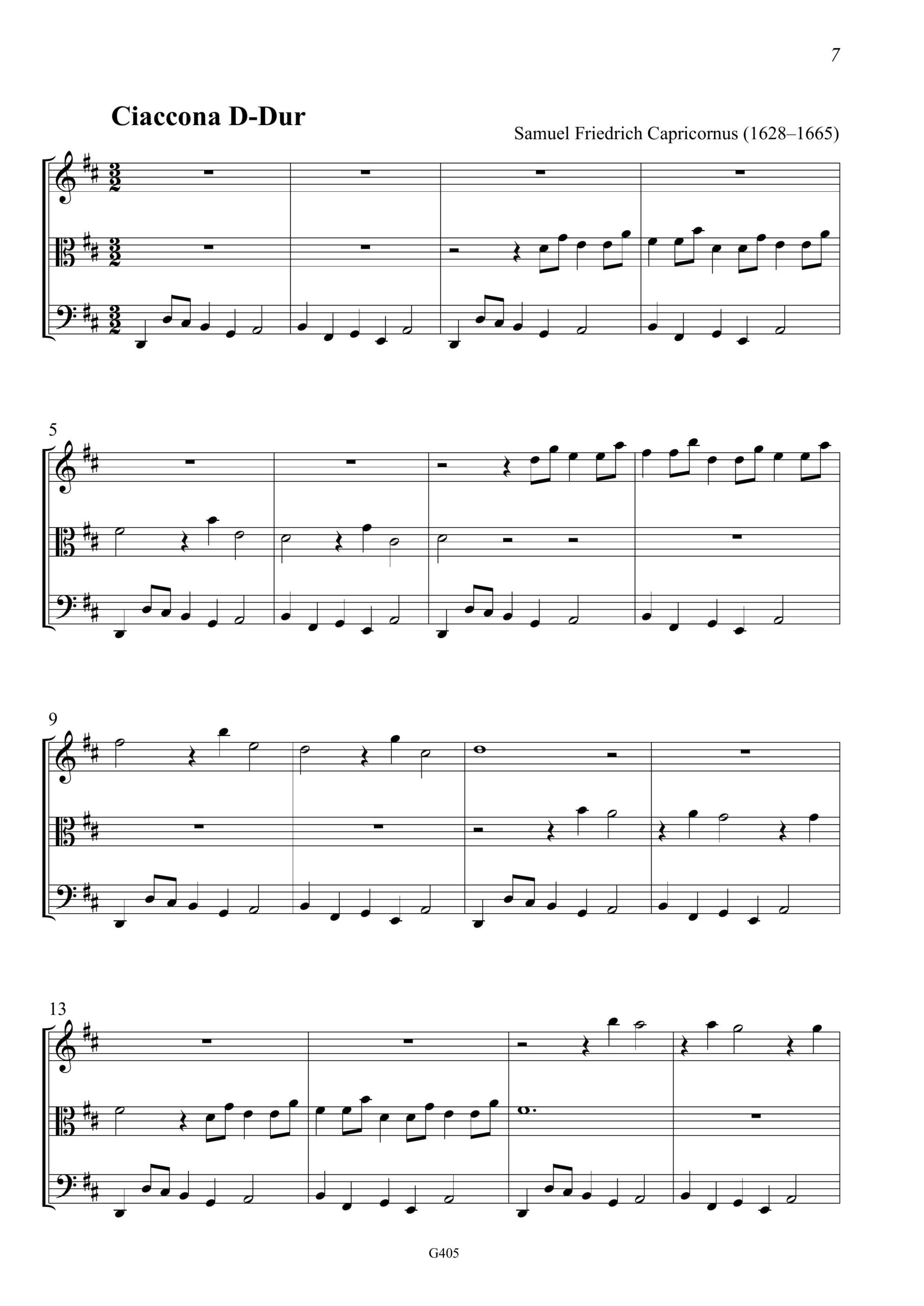 Johann Michael Nicolai, Samuel Capricornus, Sonata A-Moll, Ciaccona D-Dur, V+VdG+Bc, Partitur, Partitur mit Aussetzung, 3 Stimmen, 44 S., ISMN 979-0-50174-405-3