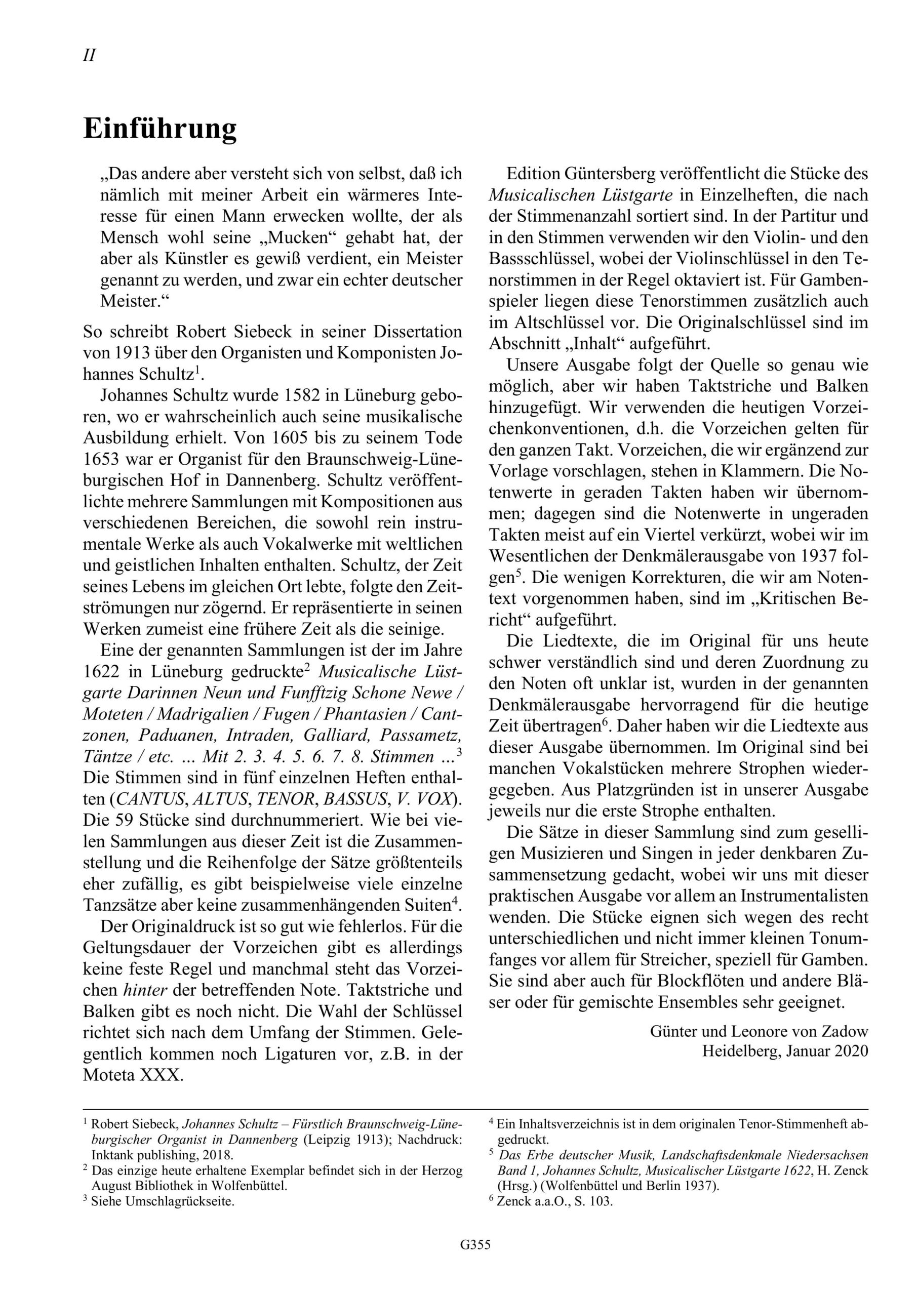 Schultz, Musicalischer Lüstgarte, Heft 2: dreistimmig, 3Cons, Partitur und drei Stimmen, 60 S., ISMN 979-0-50174-354-4