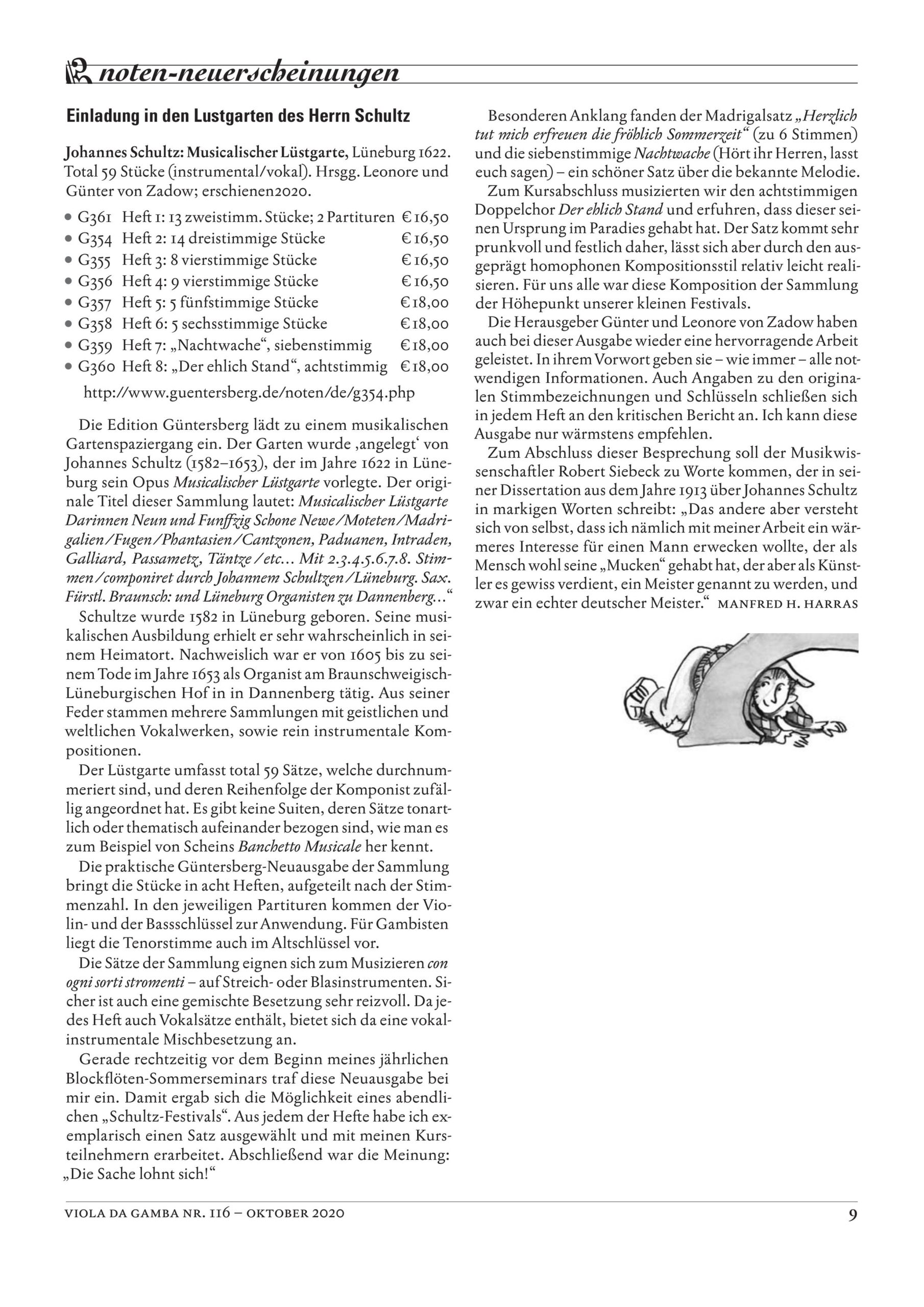 Schultz, Musicalischer Lüstgarte, Heft 8: achtstimmig (Der ehlich Stand), 8Cons, Partitur und acht Stimmen, 44 S., ISMN 979-0-50174-360-5