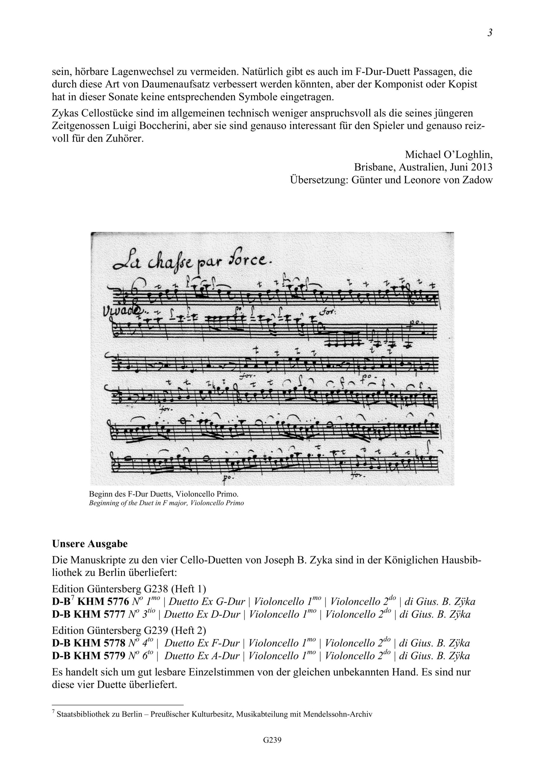 J. B. Zyka, Vier Duetti für Violoncelli, Duetti III und IV, Erstausgabe, 2Vc, Partitur und 2 Stimmen, 56 S., ISMN 979-0-50174-239-4