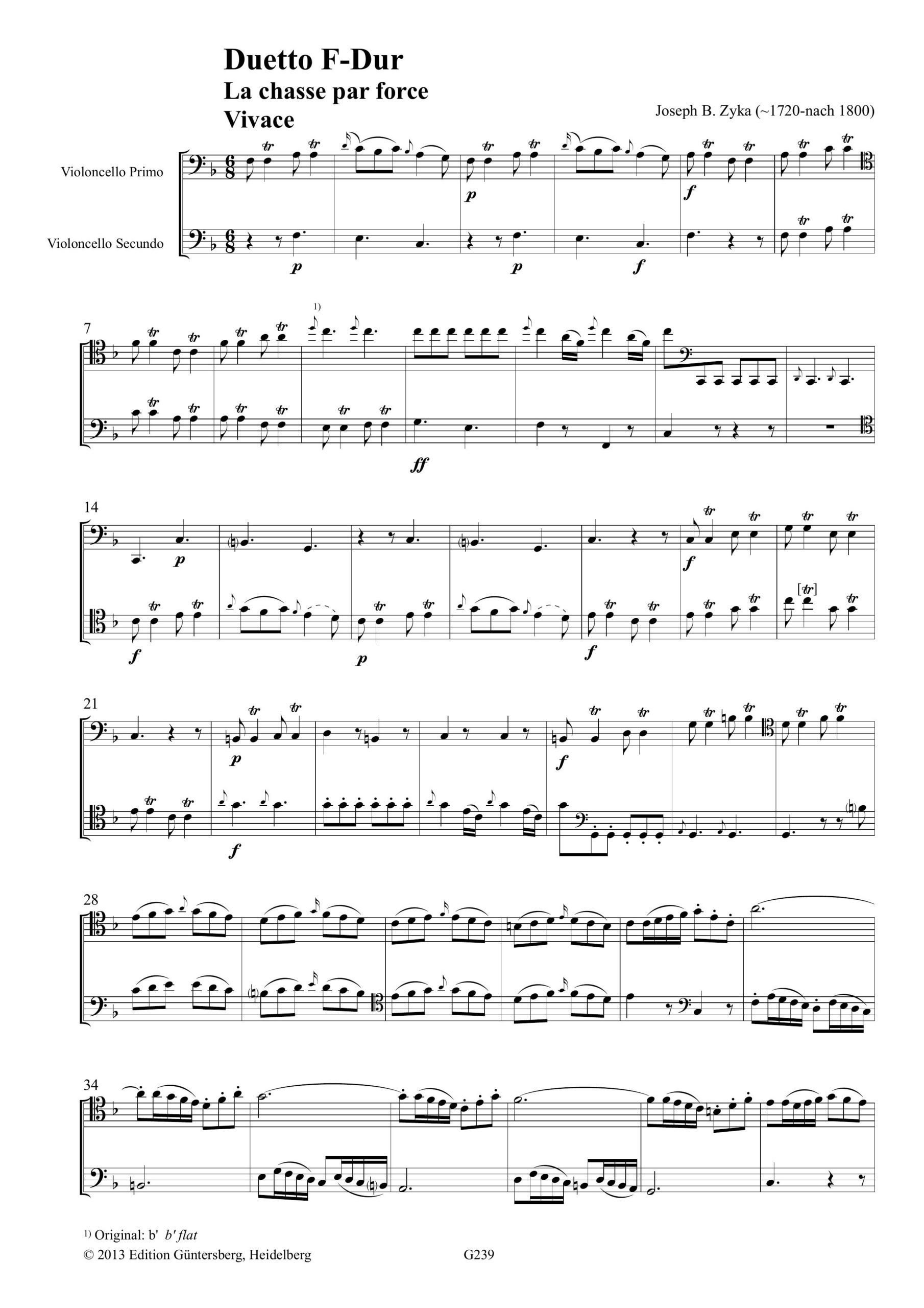 J. B. Zyka, Vier Duetti für Violoncelli, Duetti I und II, Erstausgabe, 2Vc, Partitur und 2 Stimmen, 48 S., ISMN 979-0-50174-238-7