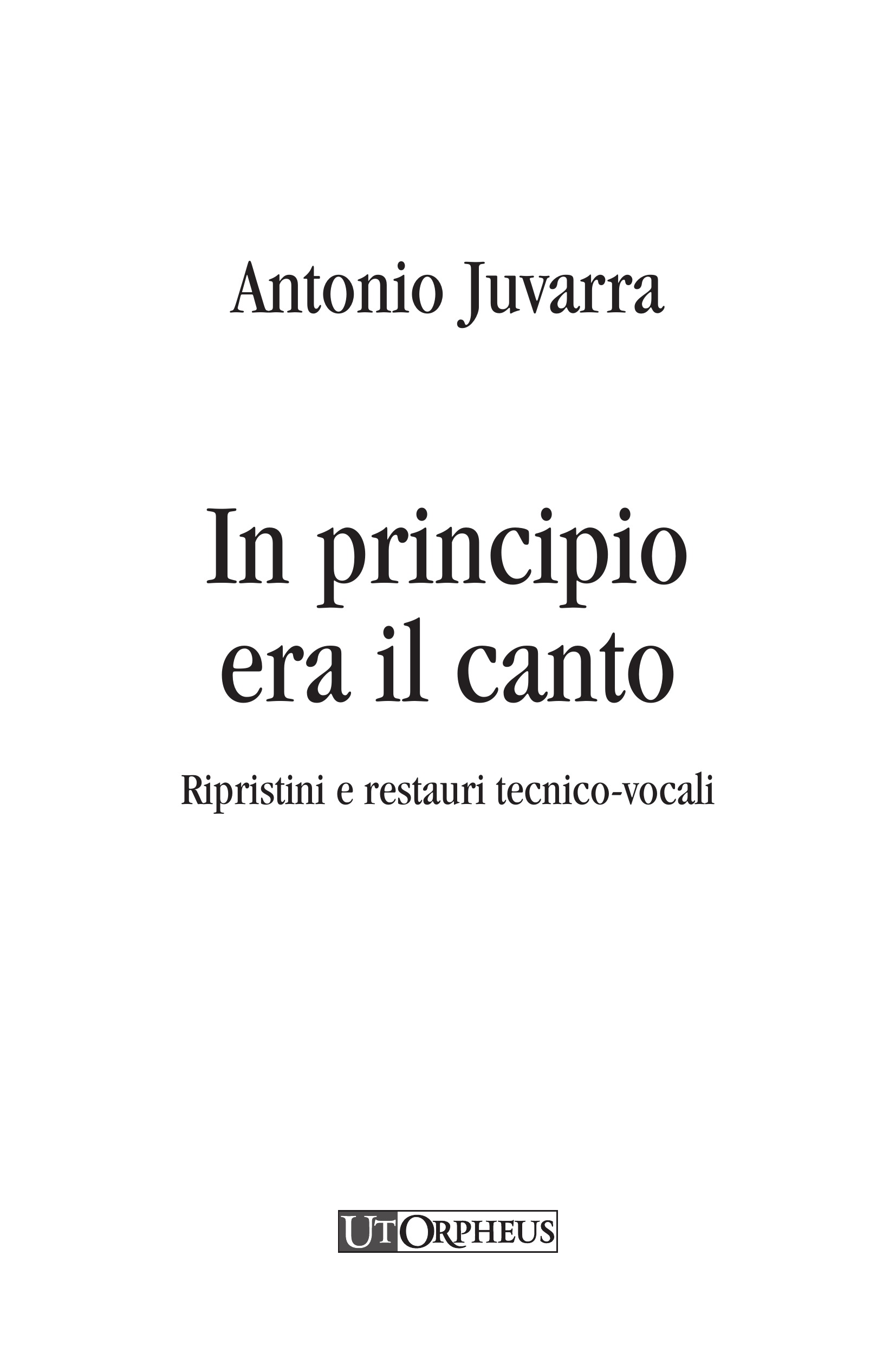 Juvarra, Antonio: In principio era il canto. Ripristini e restauri tecnico-vocali