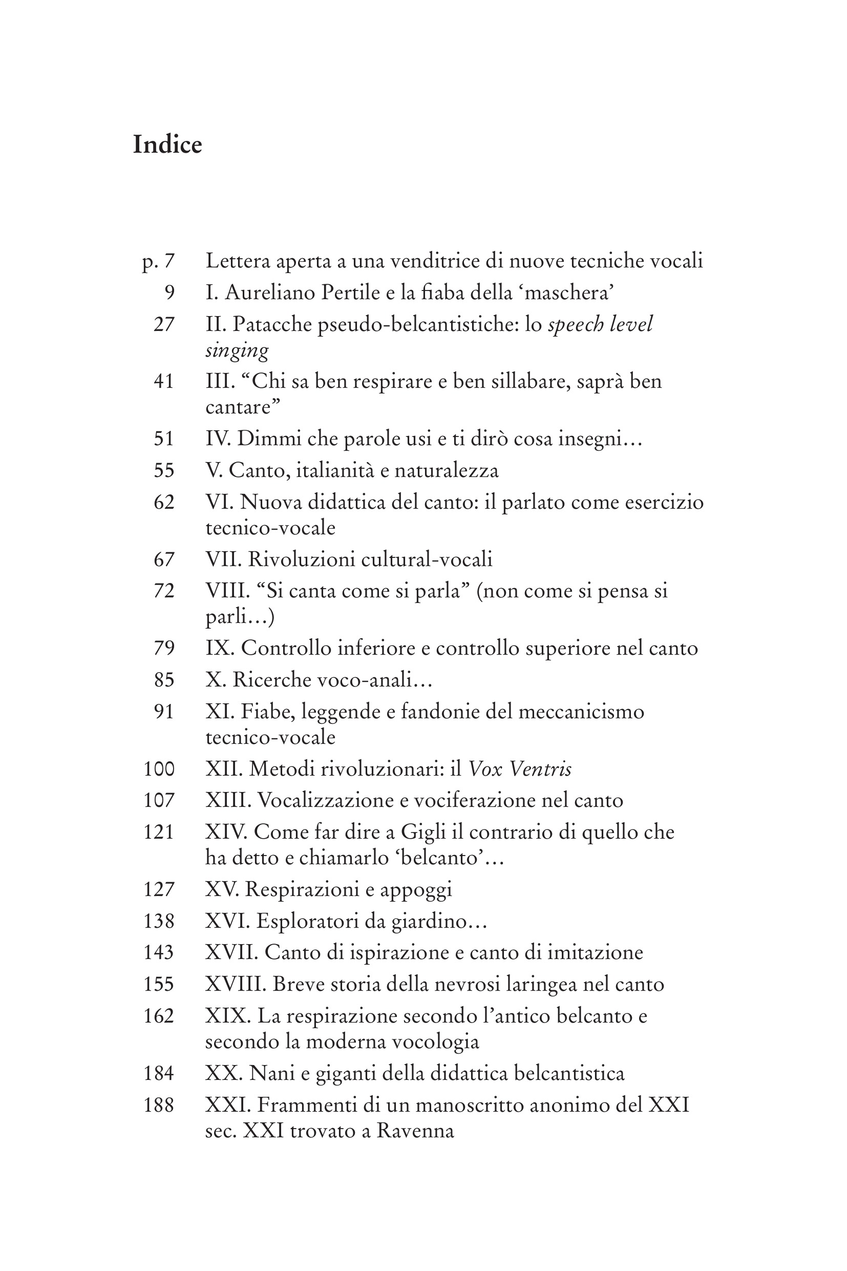 Contenuto e Descrizione: Da anni nel canto si assiste al fenomeno del moltiplicarsi delle tecniche vocali. Queste tecniche, quasi tutte ispirate al meccanicismo foniatrico più datato, hanno una pretesa di scientificità che è paradossalmente smentita sul nascere dalla loro violazione dei principi primi della fisica acustica e della fisiologia. Il risultato è un canto forzato, faticoso e monocorde, frutto della moltiplicazione dei controlli muscolari diretti.
