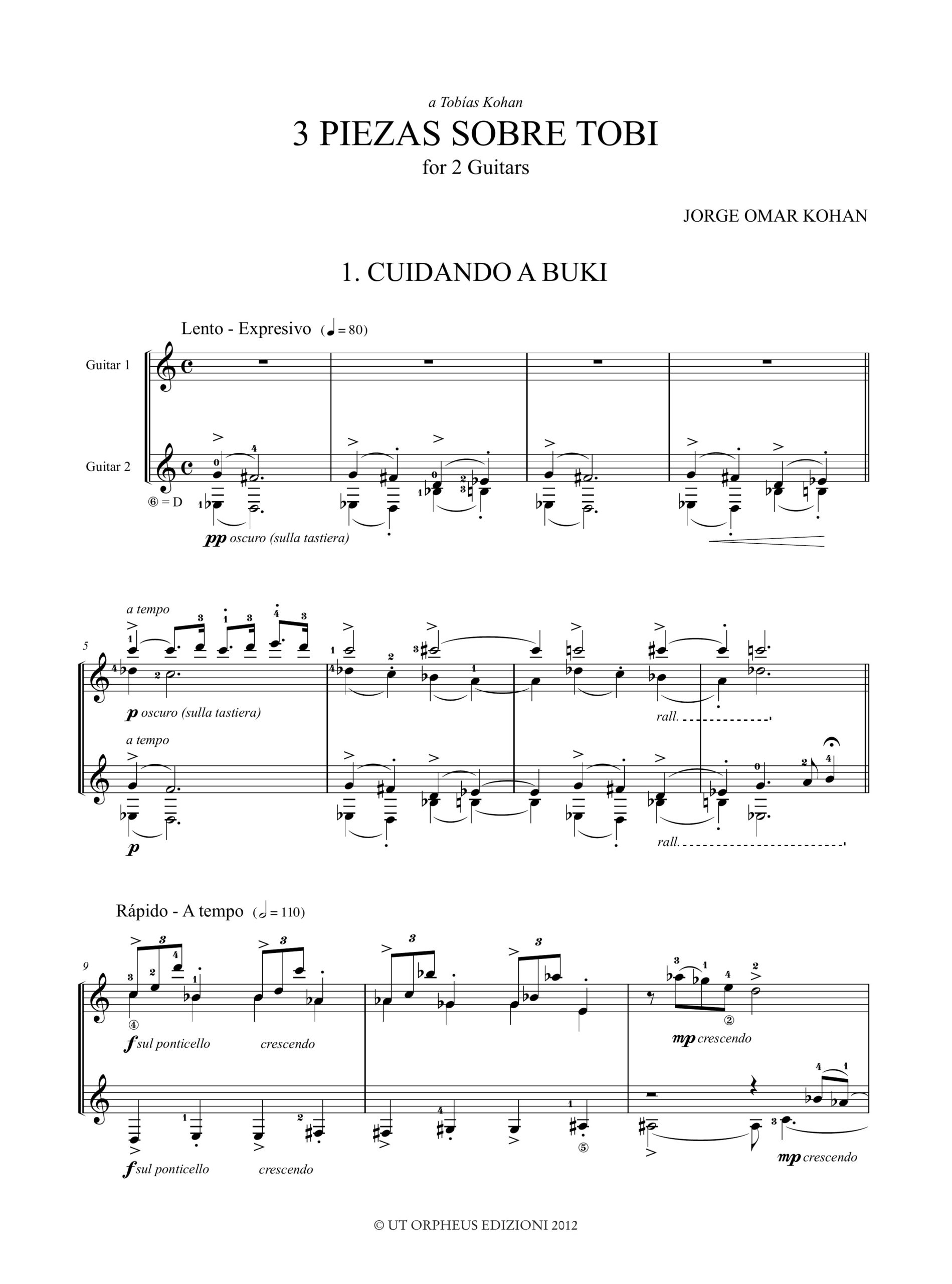 Kohan, Jorge Omar: 3 Piezas sobre Tobi per 2 Chitarre (2007)
