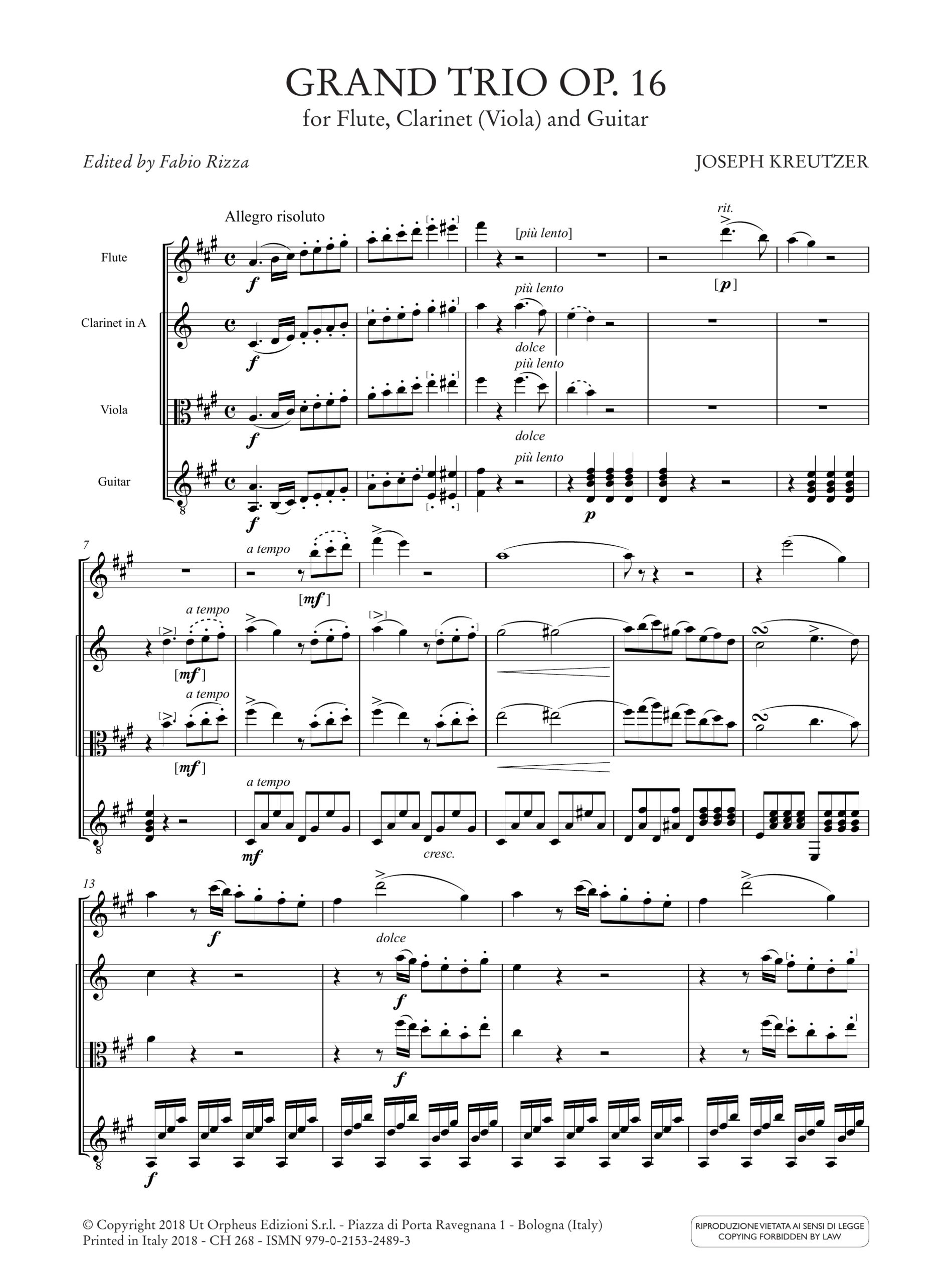 Kreutzer, Joseph: Grand Trio op. 16 per Flauto, Clarinetto (Viola) e Chitarra