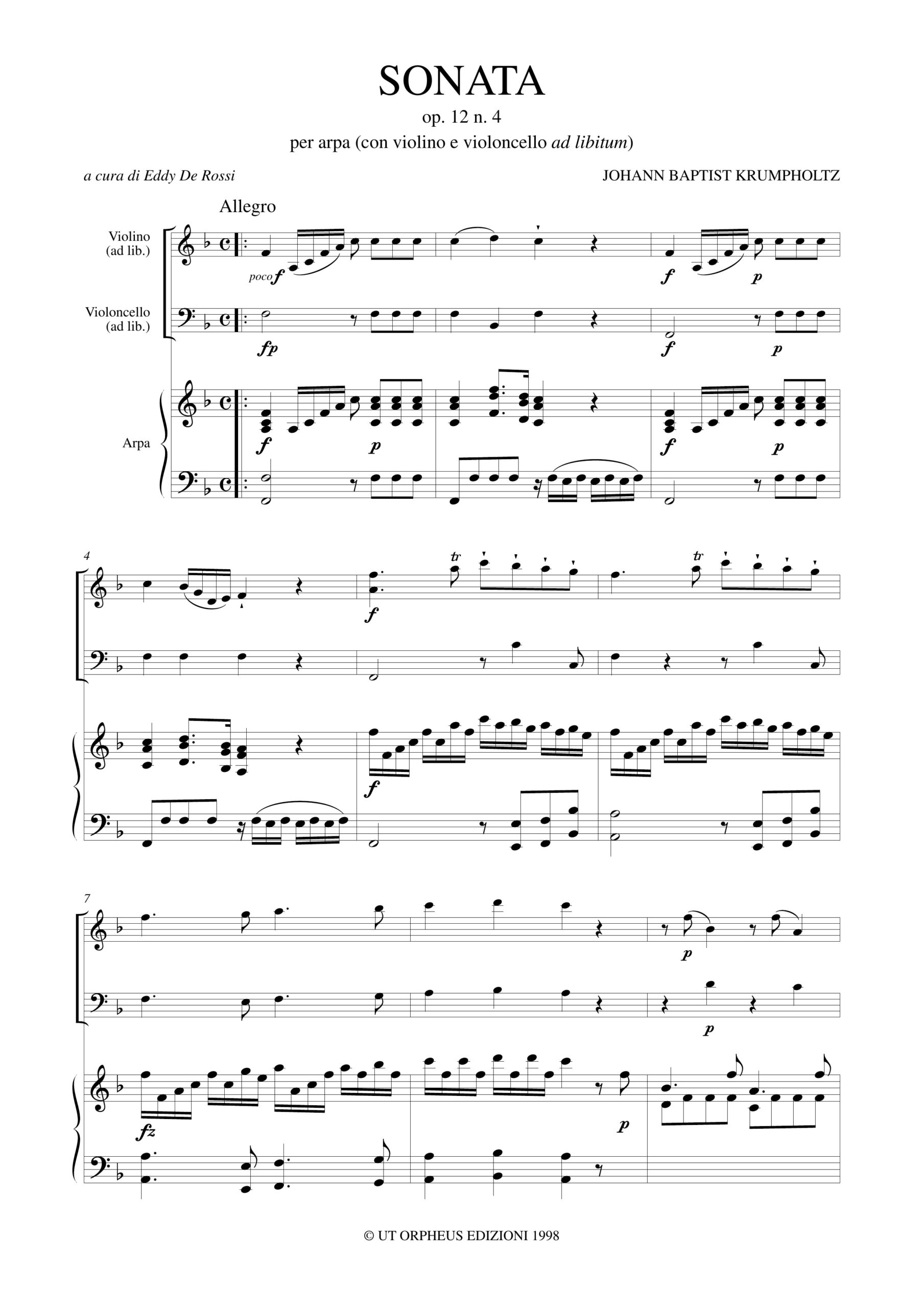 Krumpholtz, Johann Baptist: Sonata Op. 12 N. 4 per Arpa (con Violino e Violoncello ad libitum)
