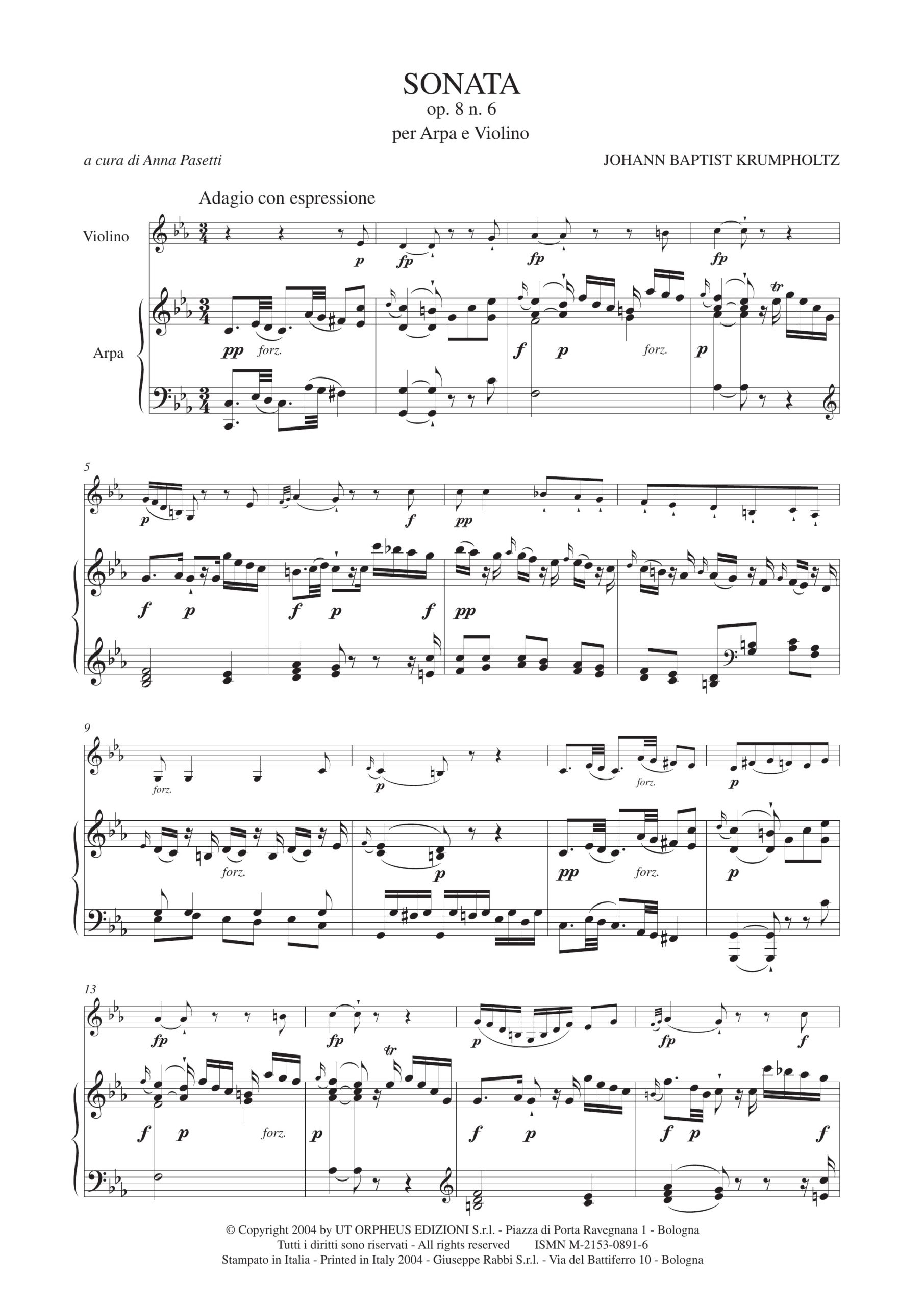 Krumpholtz, Johann Baptist: Sonata Op. 8 N. 6 per Arpa e Violino