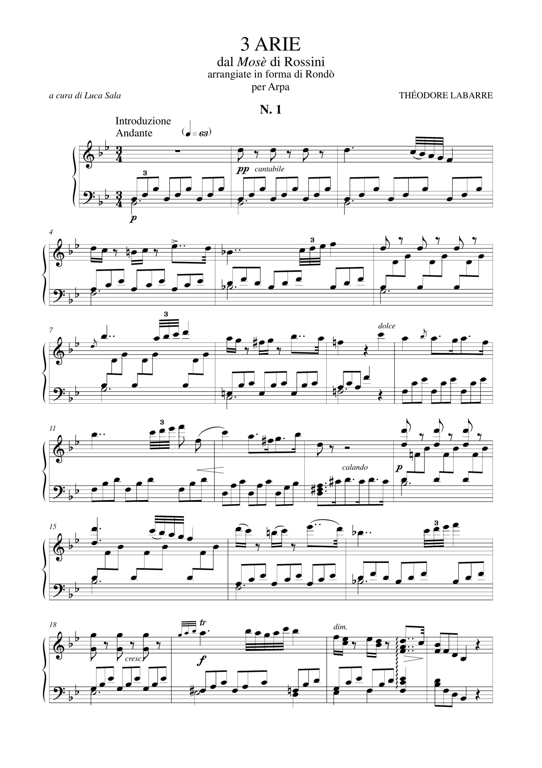 Labarre, Théodore: 3 Arie dal “Mosè” di Rossini arrangiate in forma di Rondò per Arpa
