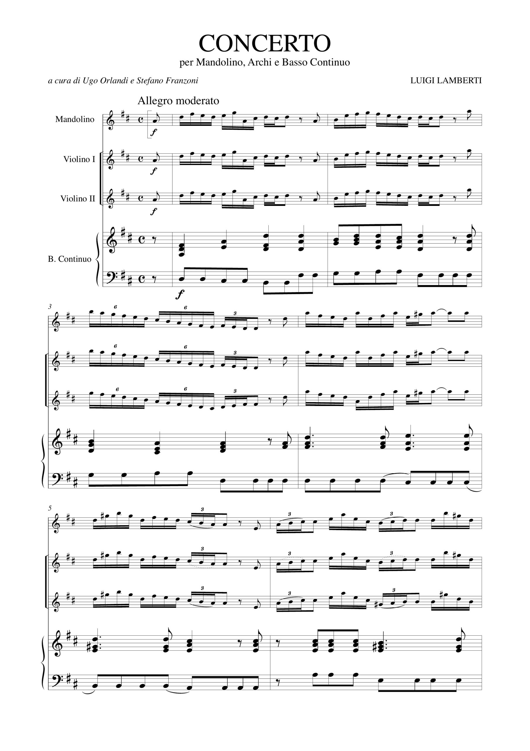 Lamberti, Luigi: Concerto in Re maggiore per Mandolino, Archi e Basso Continuo [Partitura]