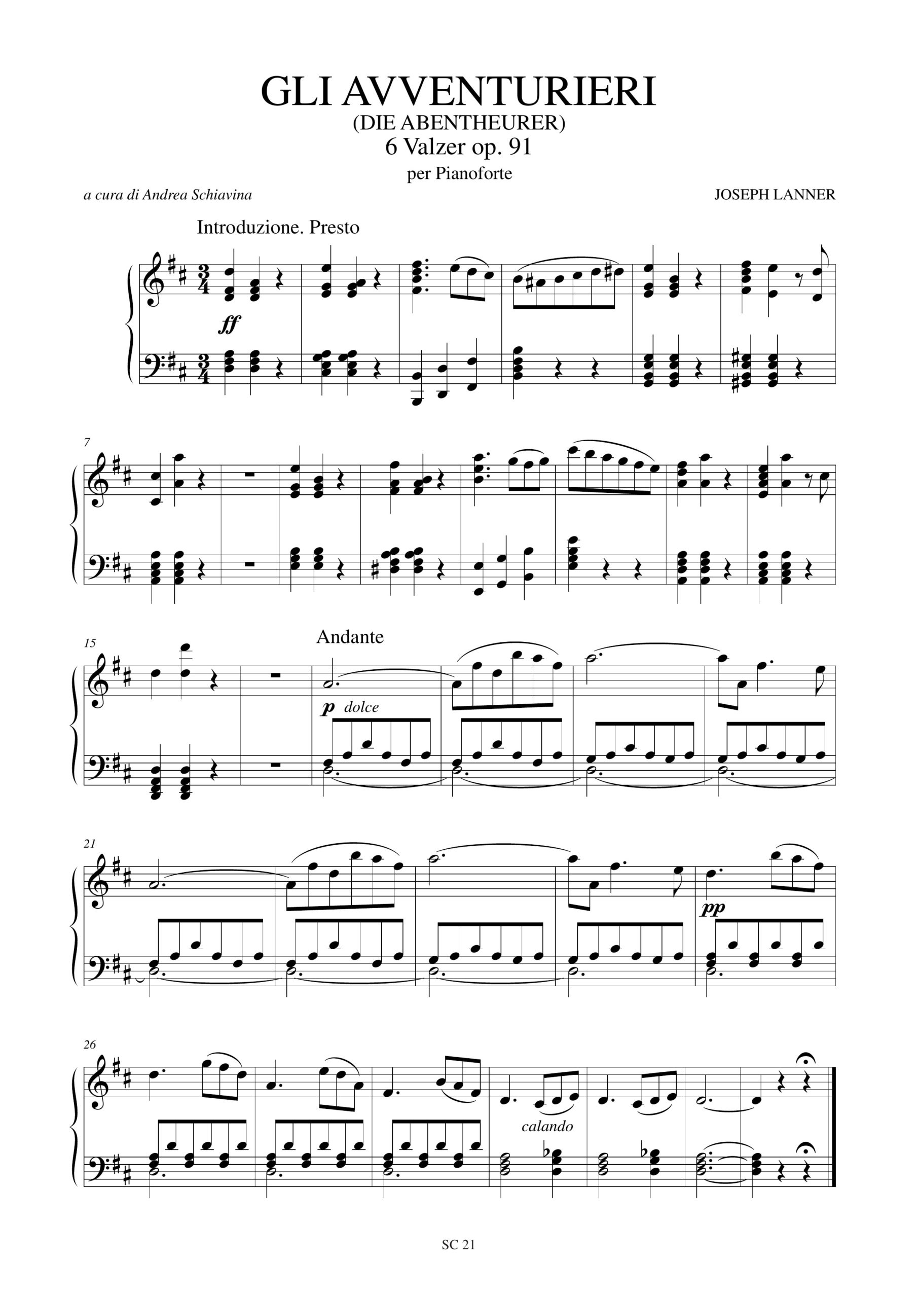 Lanner, Joseph: Gli Avventurieri (Die Abentheurer). 6 Valzer per Pianoforte