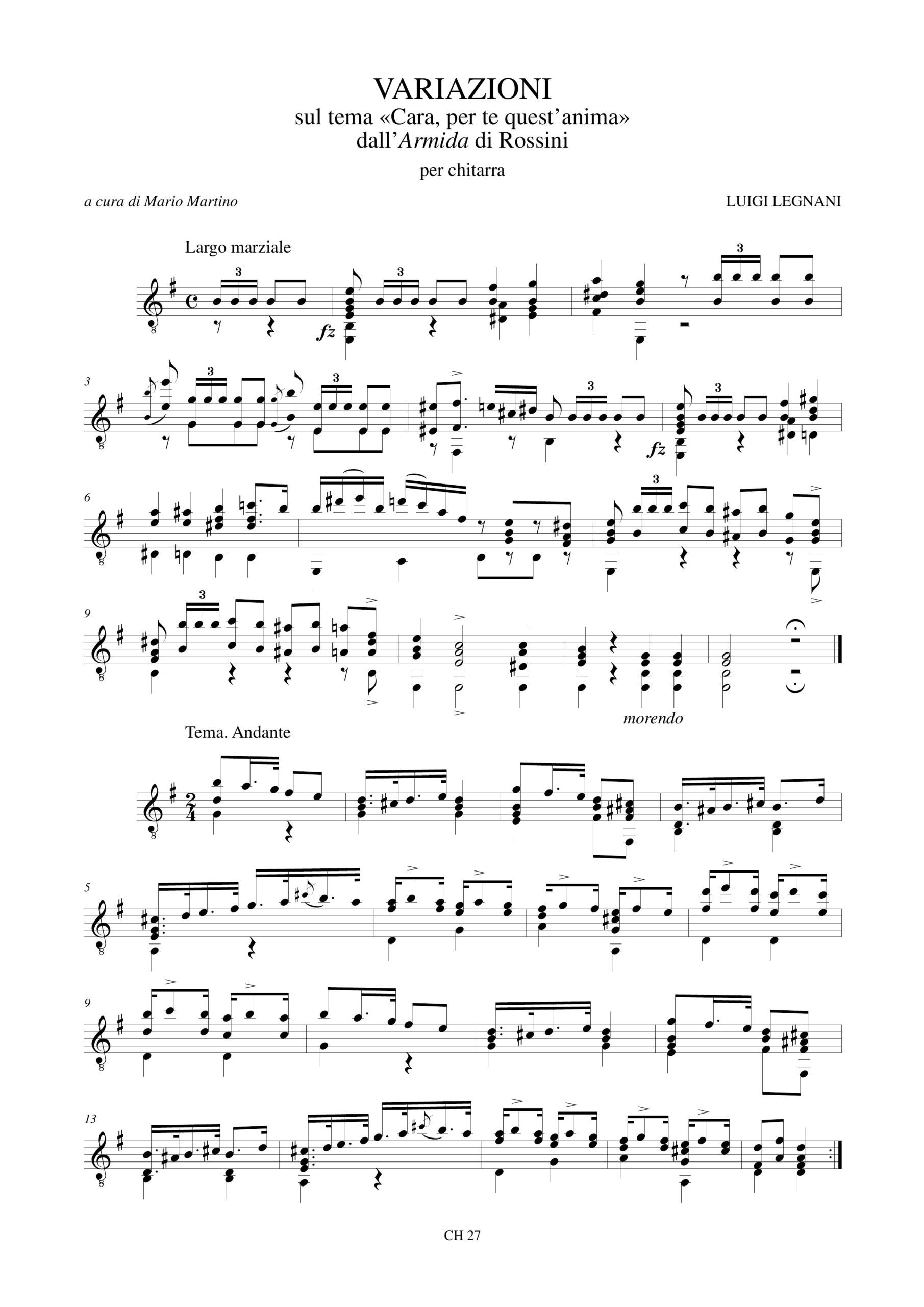 Legnani, Luigi: Variazioni sul tema “Cara, per te quest’anima” dall’“Armida” di Rossini per Chitarra