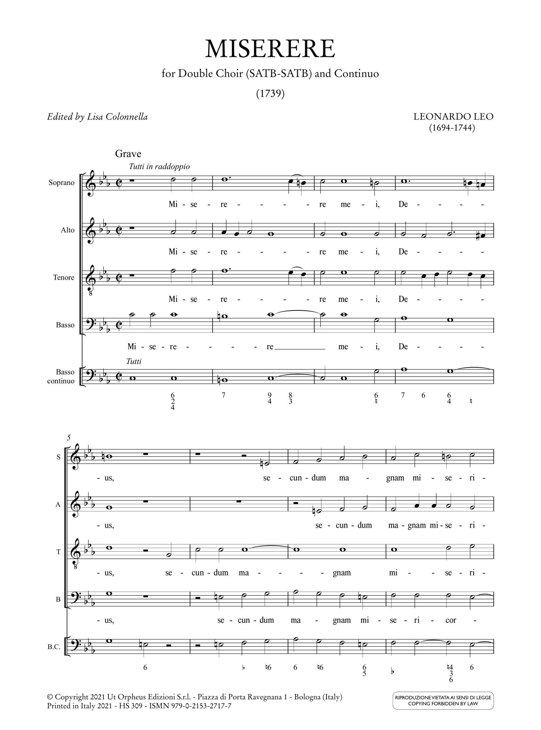 Leo, Leonardo: Miserere (1739) per Doppio Coro (SATB-SATB) e Basso Continuo