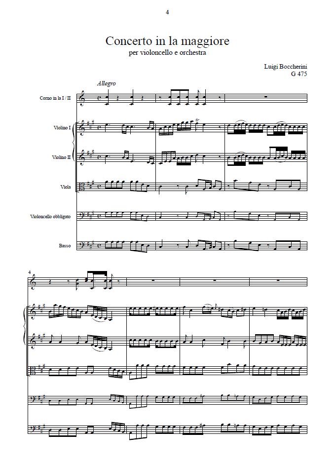 Luigi Boccherini – Concerto in la maggiore GerB 475 per violoncello e orchestra (2 horns, strings)