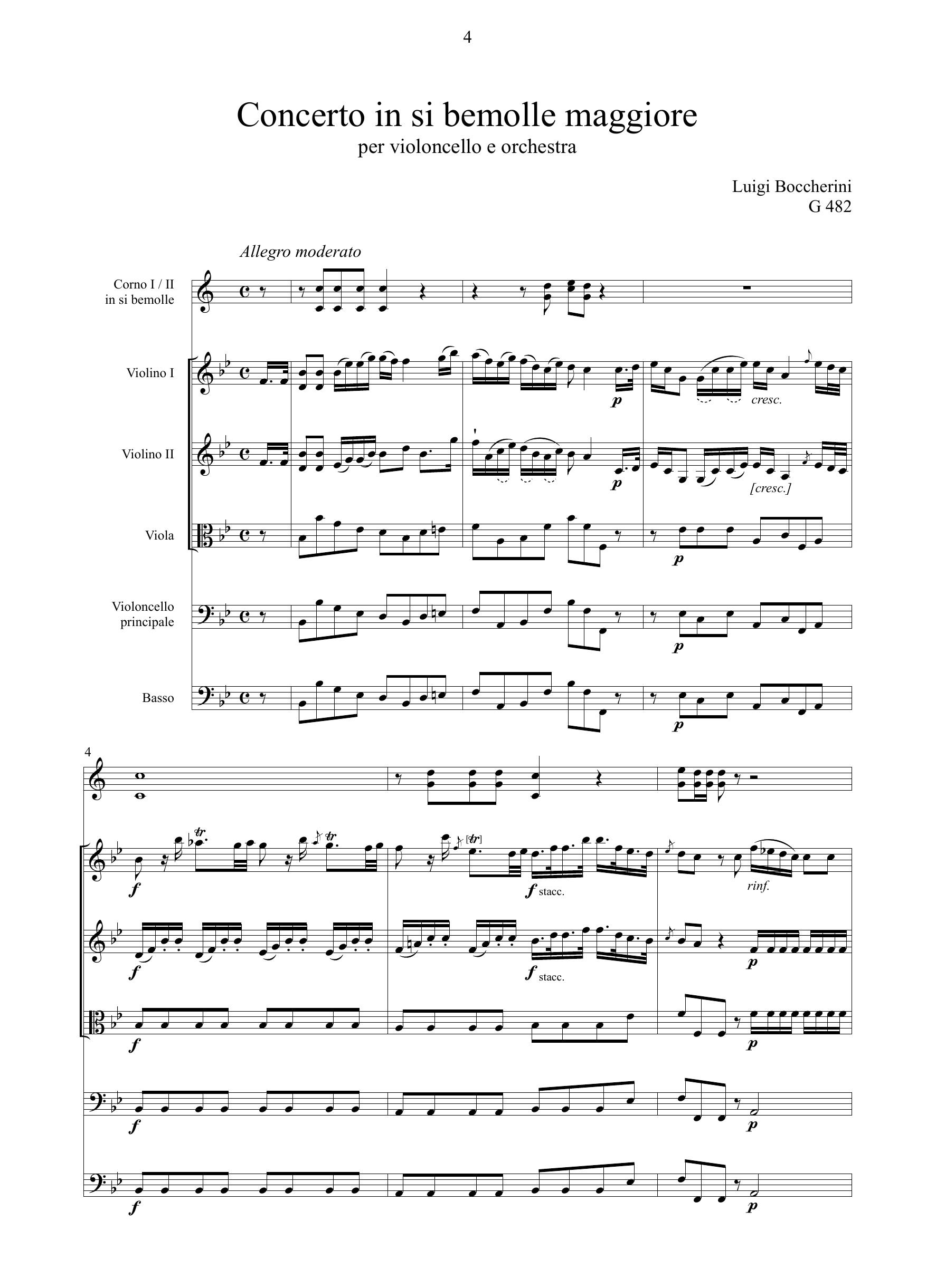 Luigi Boccherini – Concerto in si bem. maggiore GerB 482 per violoncello e orchestra (2 horns, strings)