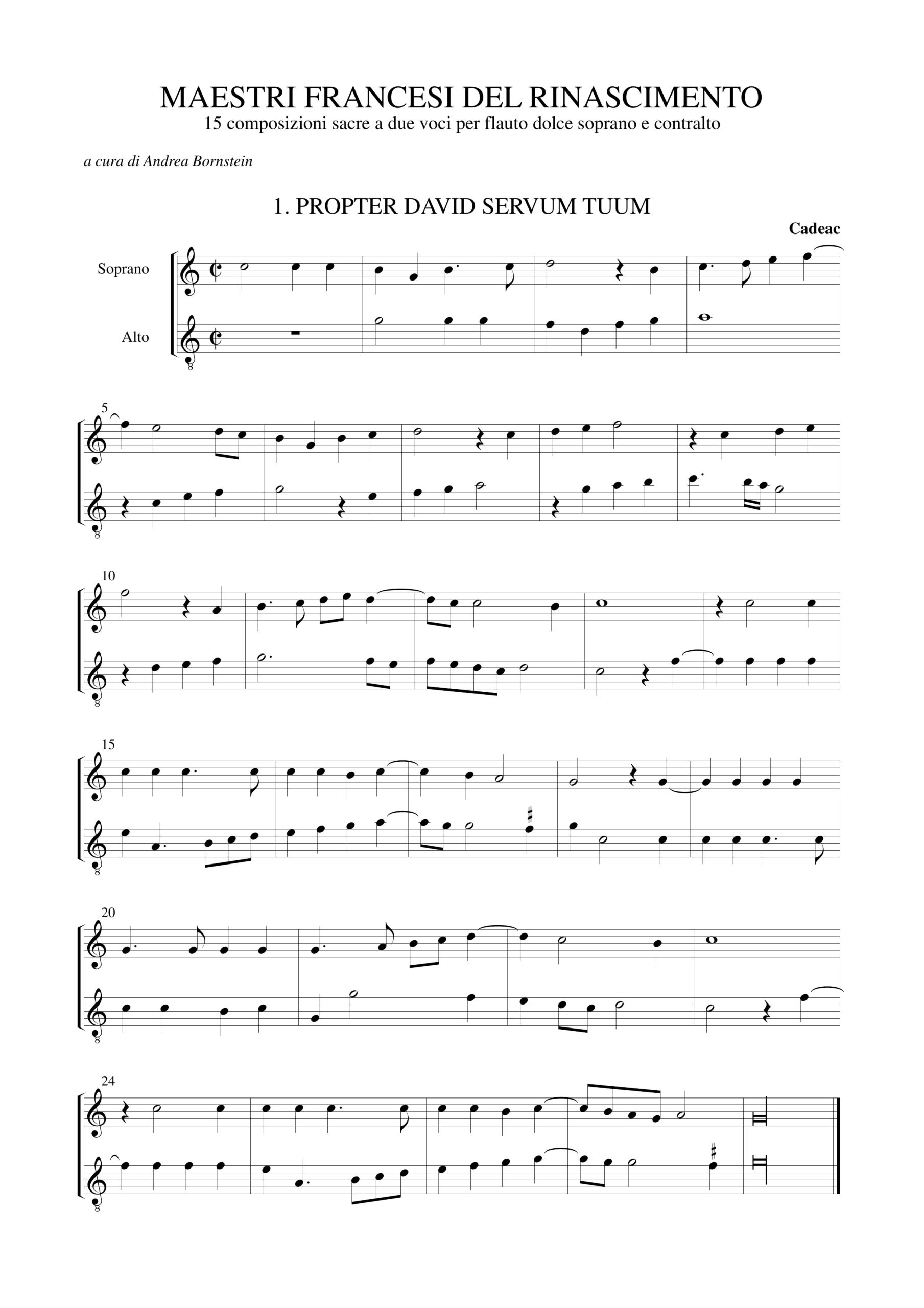 Maestri francesi del Rinascimento: 15 Composizioni Sacre a due voci per Flauto Dolce Soprano e Contralto
