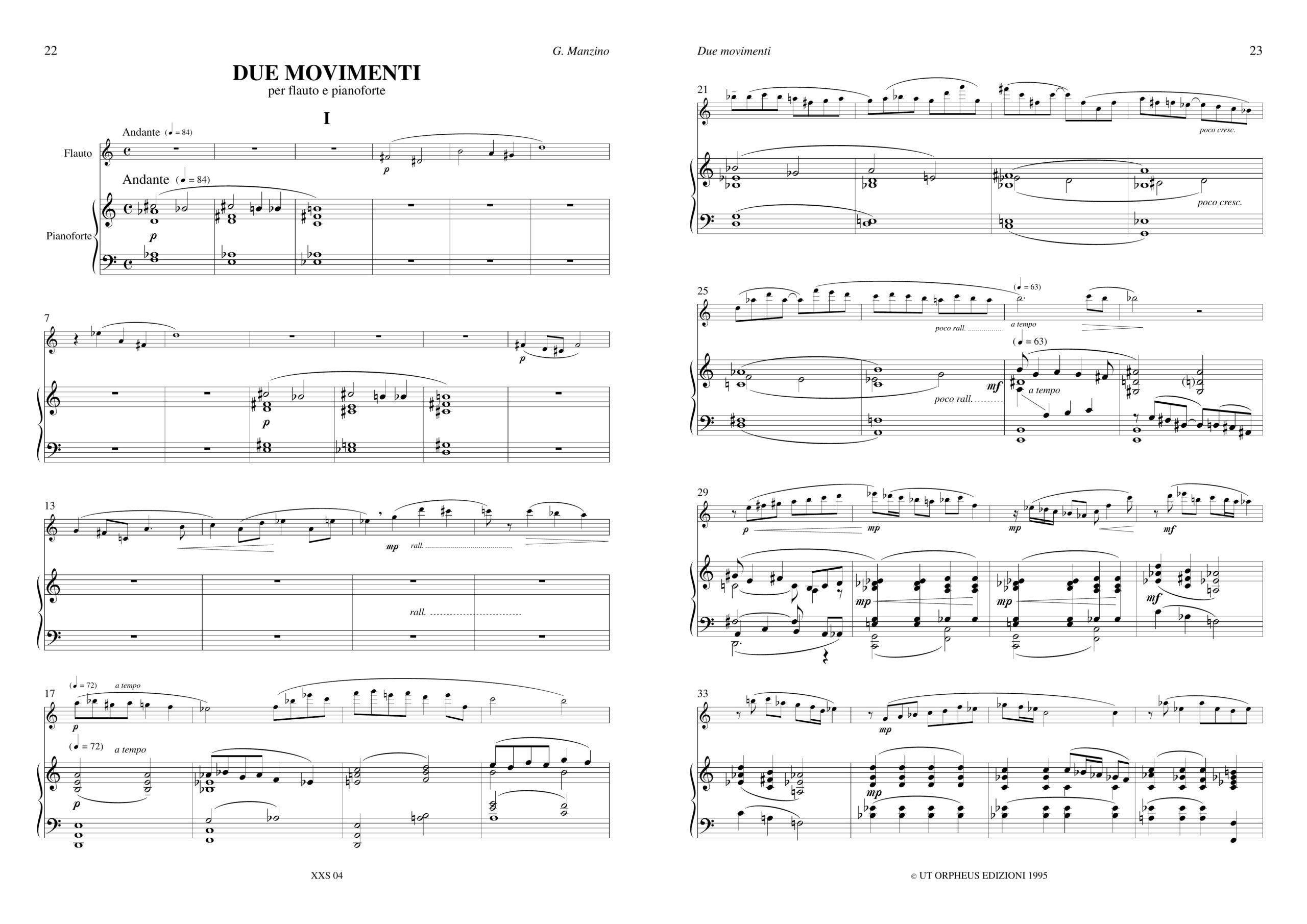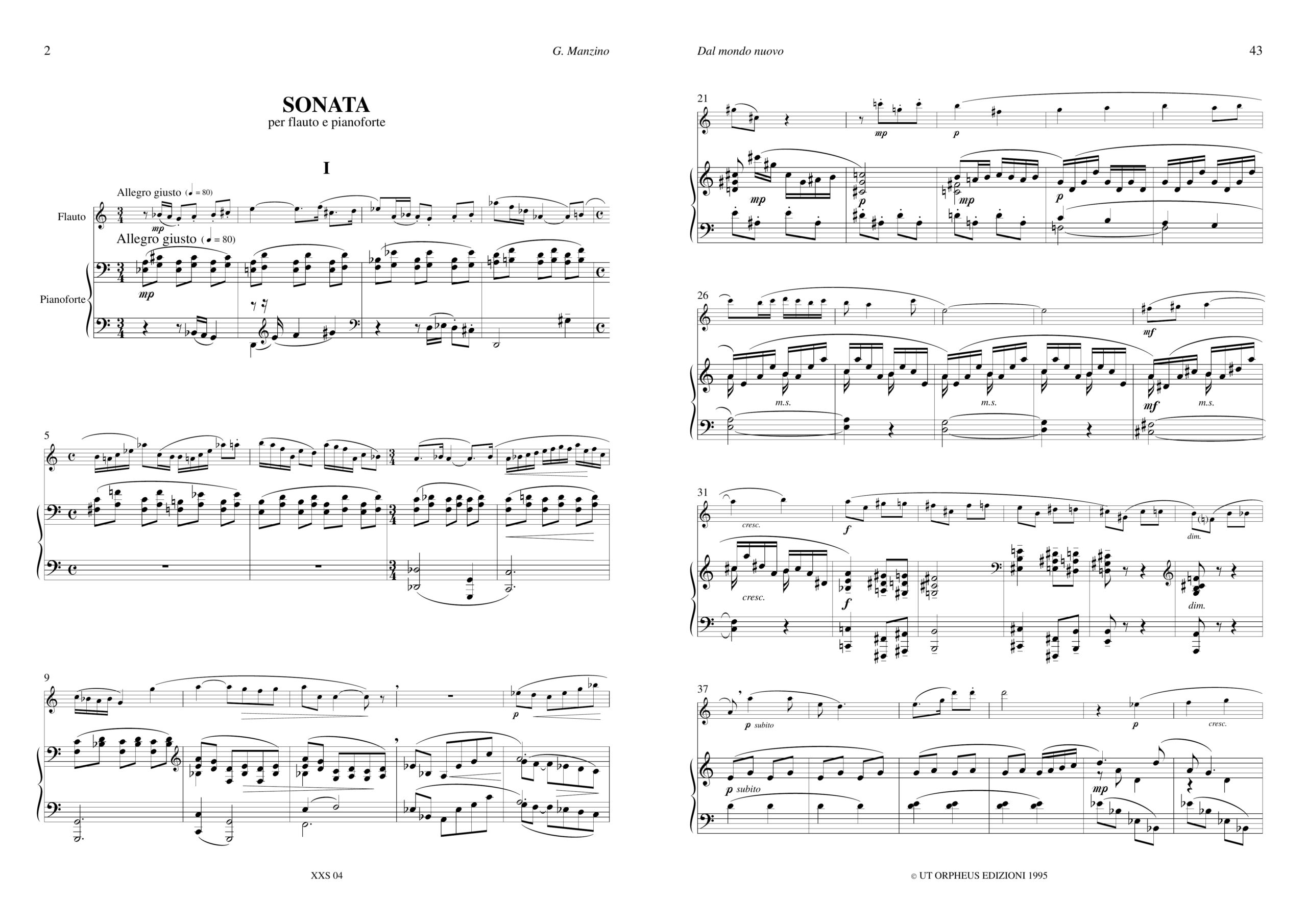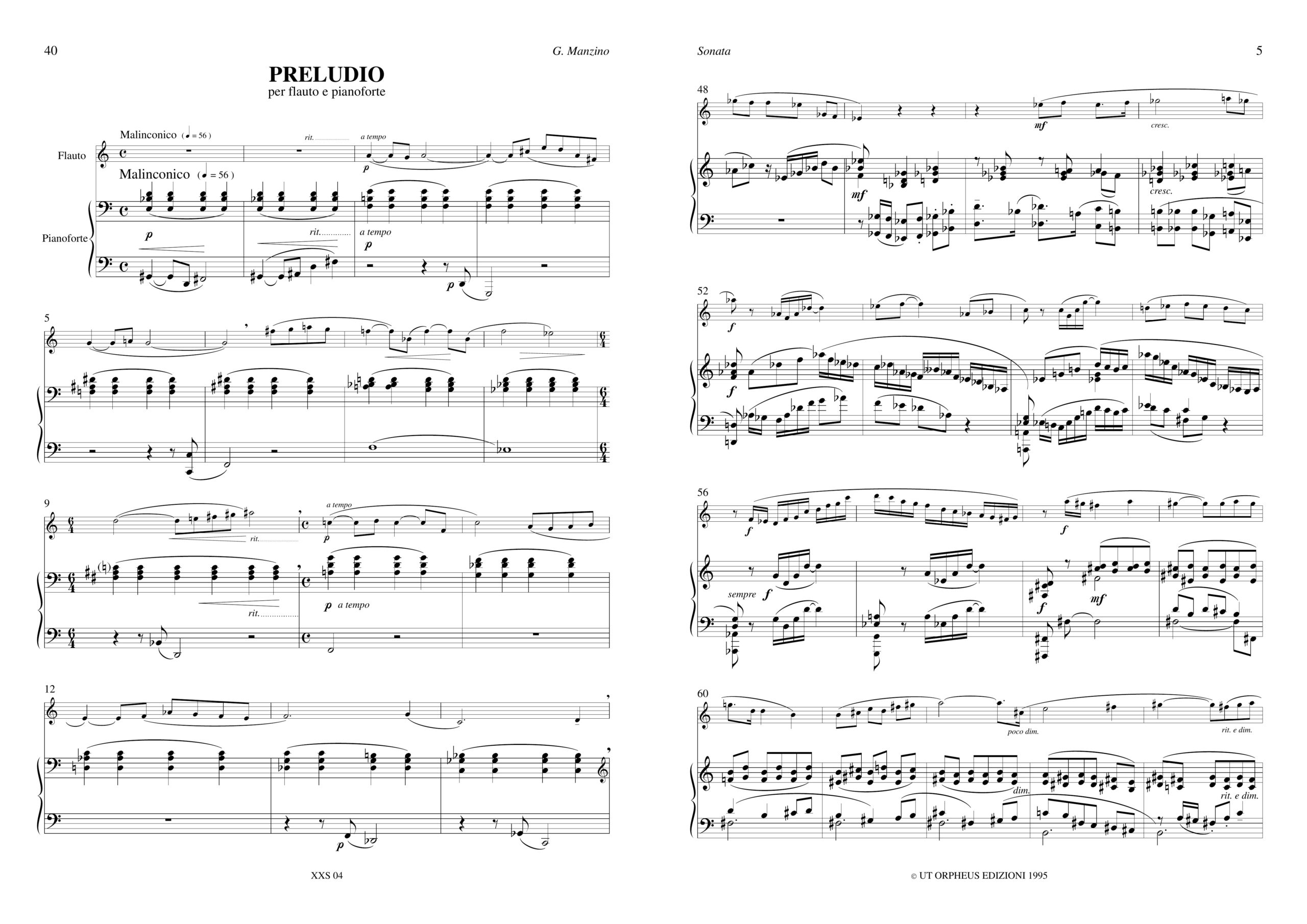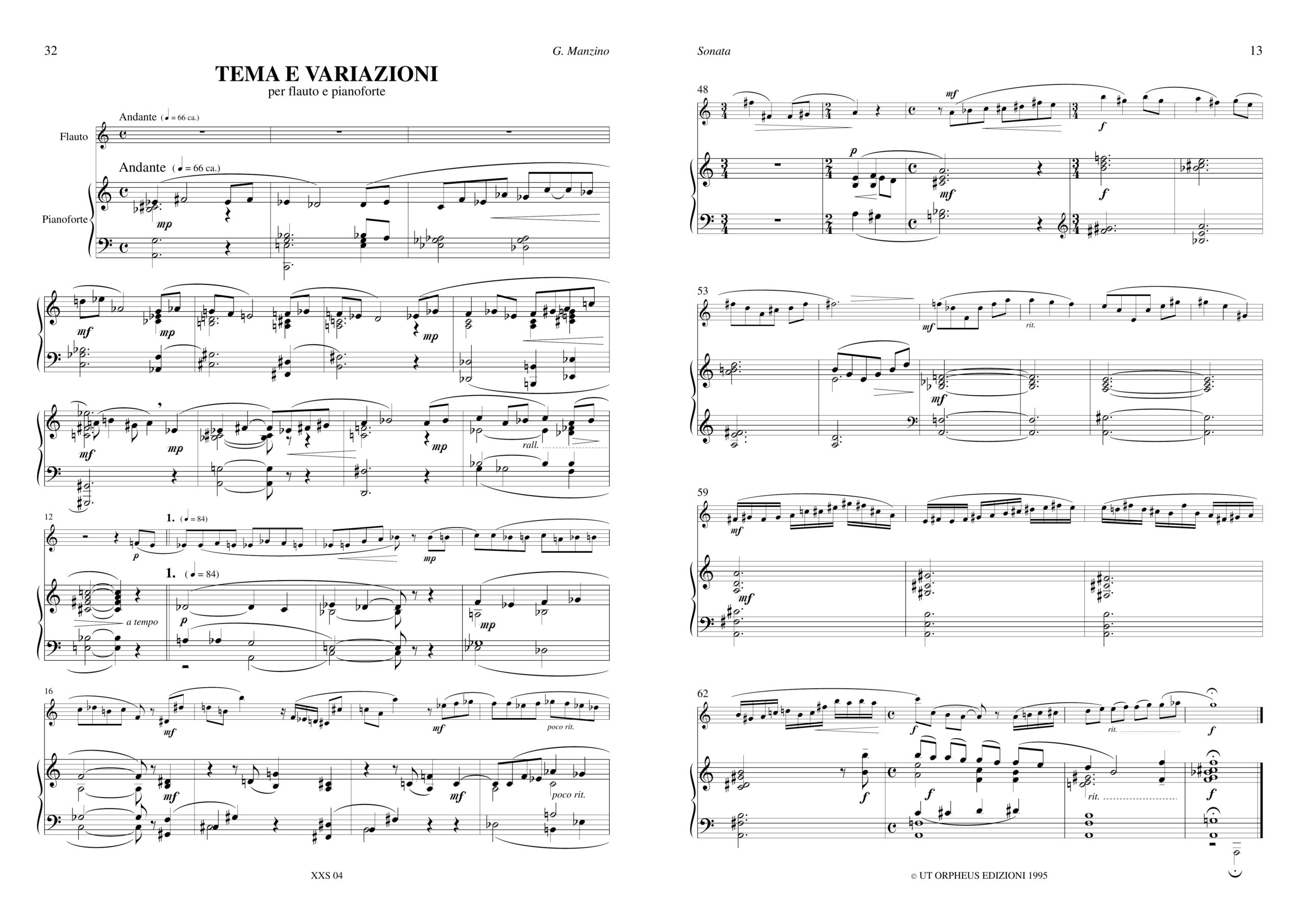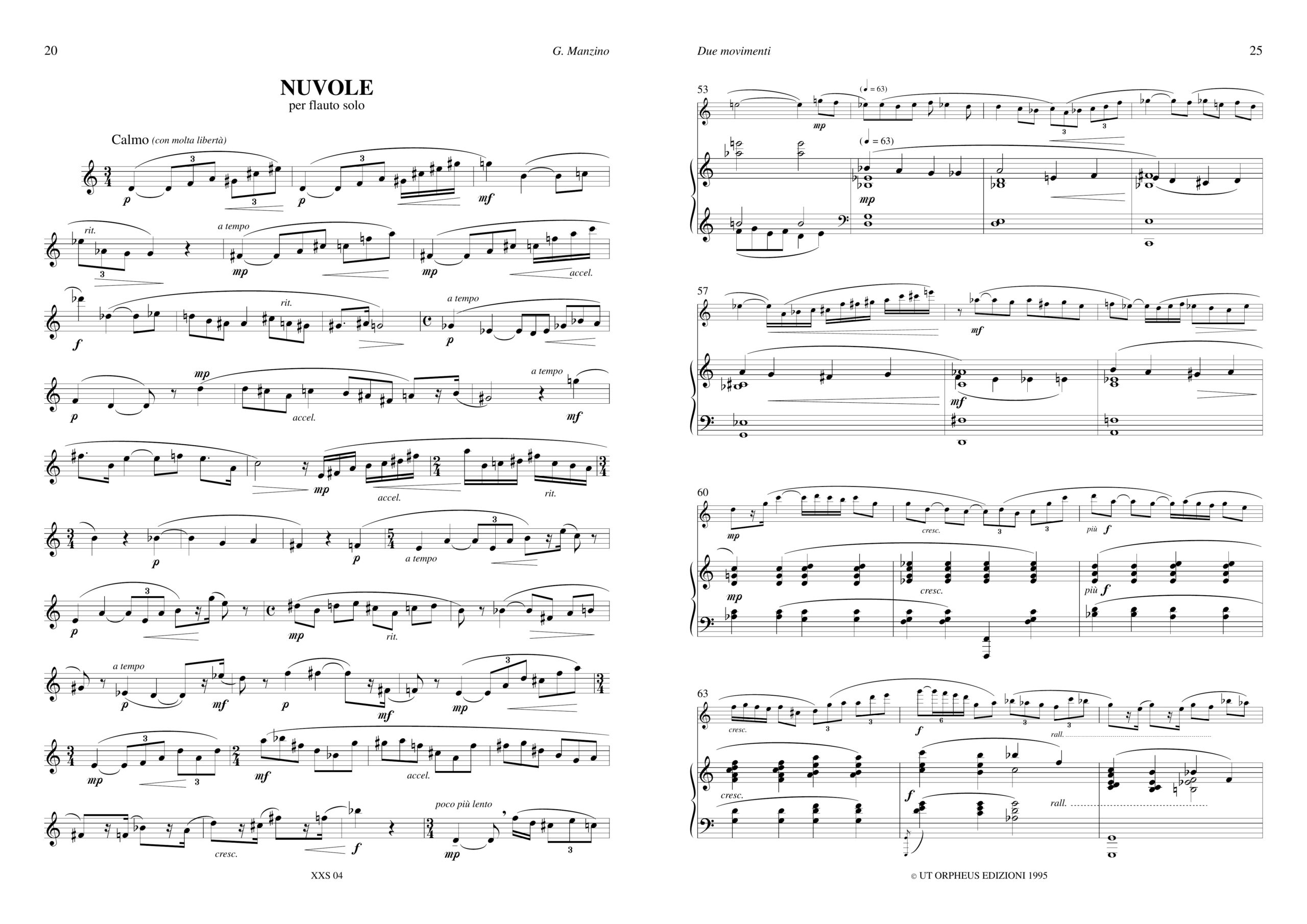 Manzino, Giuseppe: Opere per Flauto e Pianoforte. “Nuvole” per Flauto solo